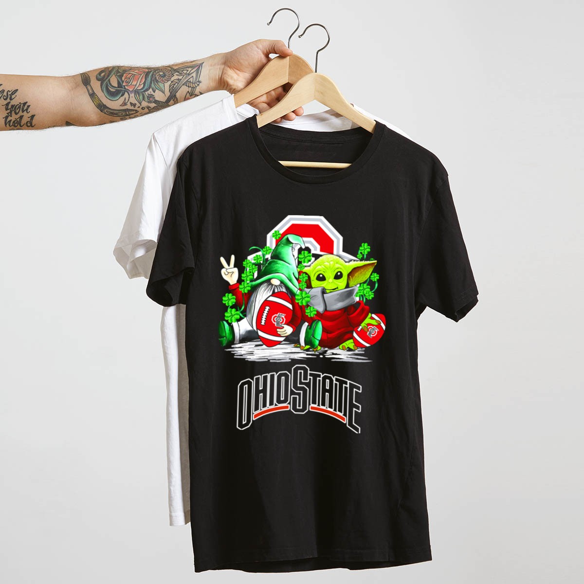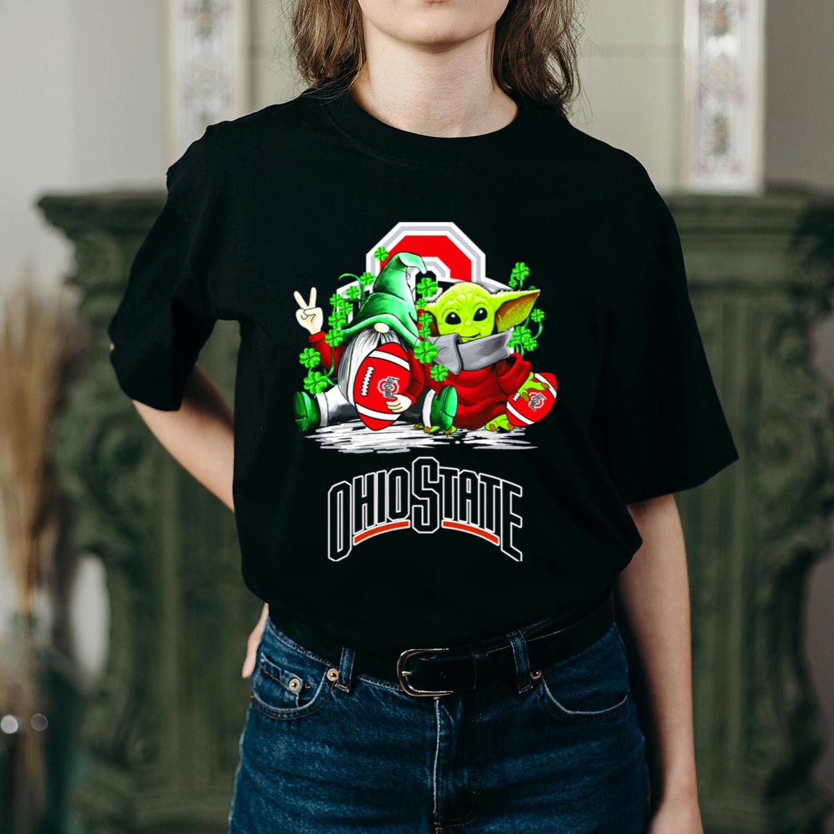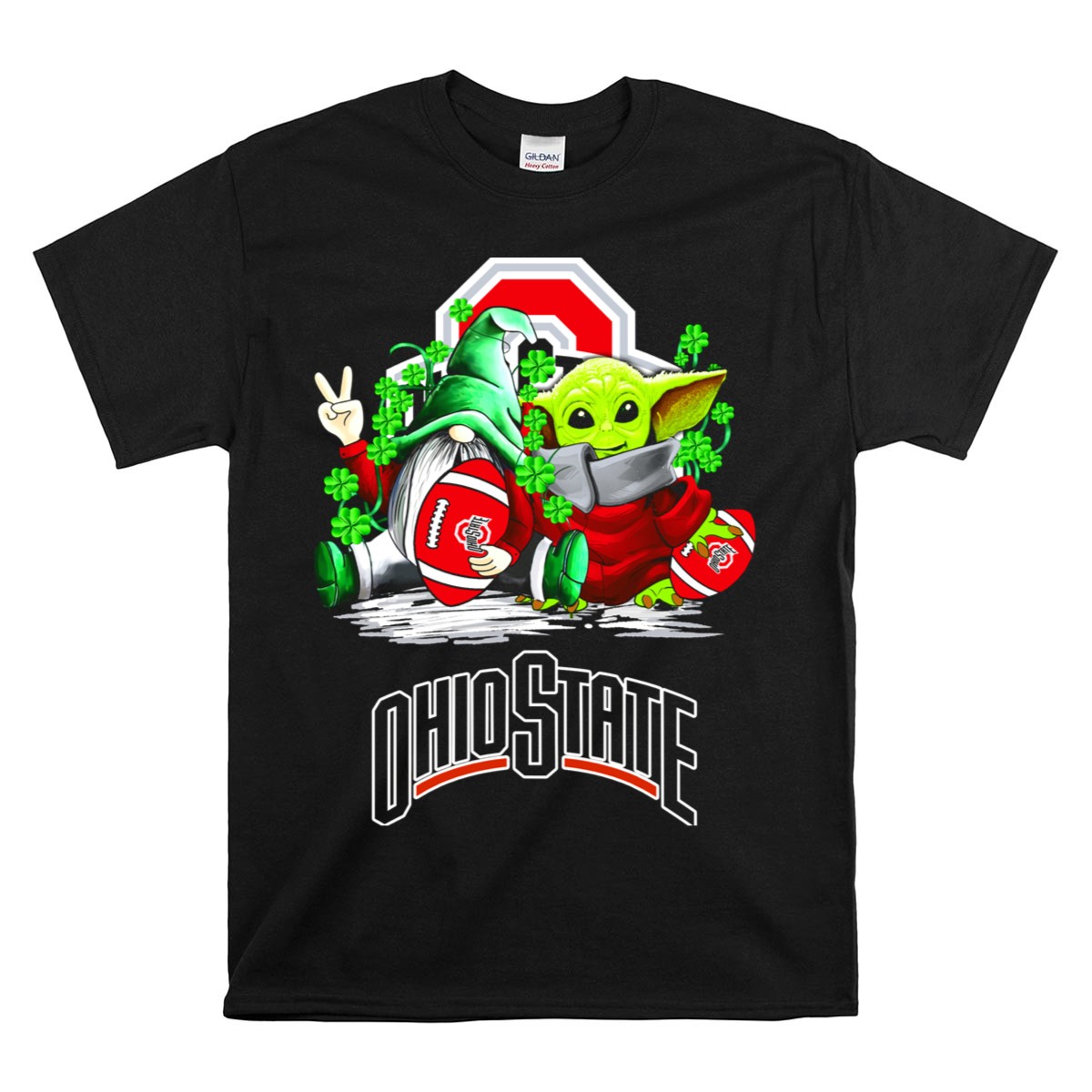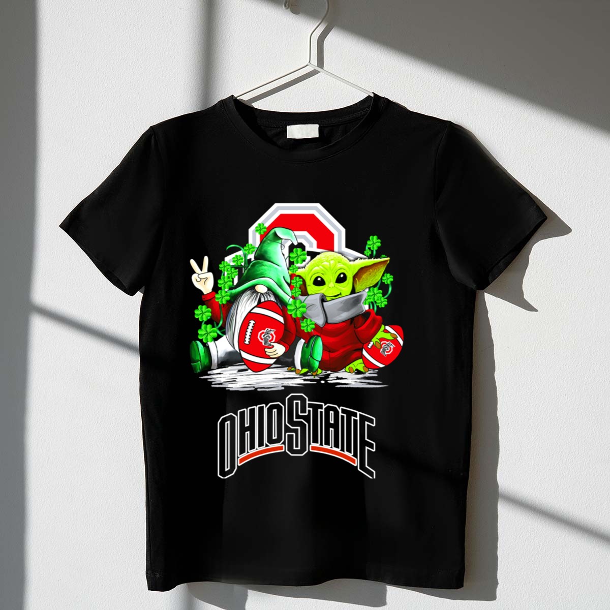 Celebrate your love for the Ohio State Buckeyes this St. Patrick’s Day with our exclusive fan-made design featuring a whimsical gnome and Yoda surrounded by shamrocks! Perfect for die-hard fans and anyone looking to showcase their team spirit while enjoying casual outings or themed events. This comfortable and stylish T-shirt is ideal for daily wear and a must-have for all-season fun!