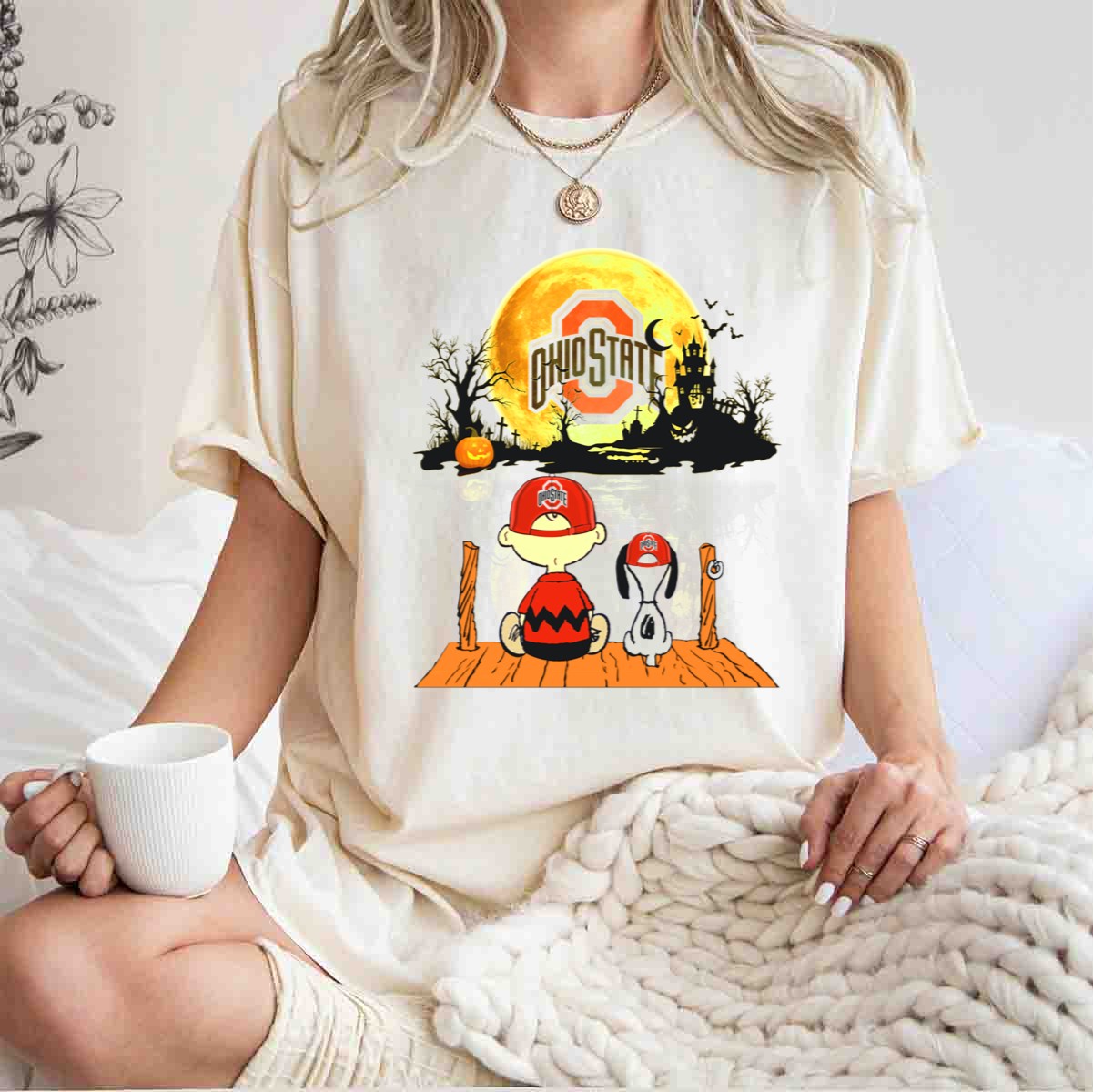 Ohio State Buckeyes Halloween Moon Charlie And Snoopy 495 T Shirt
