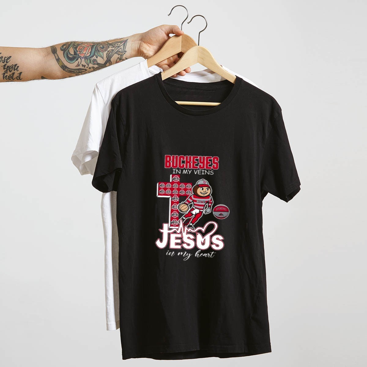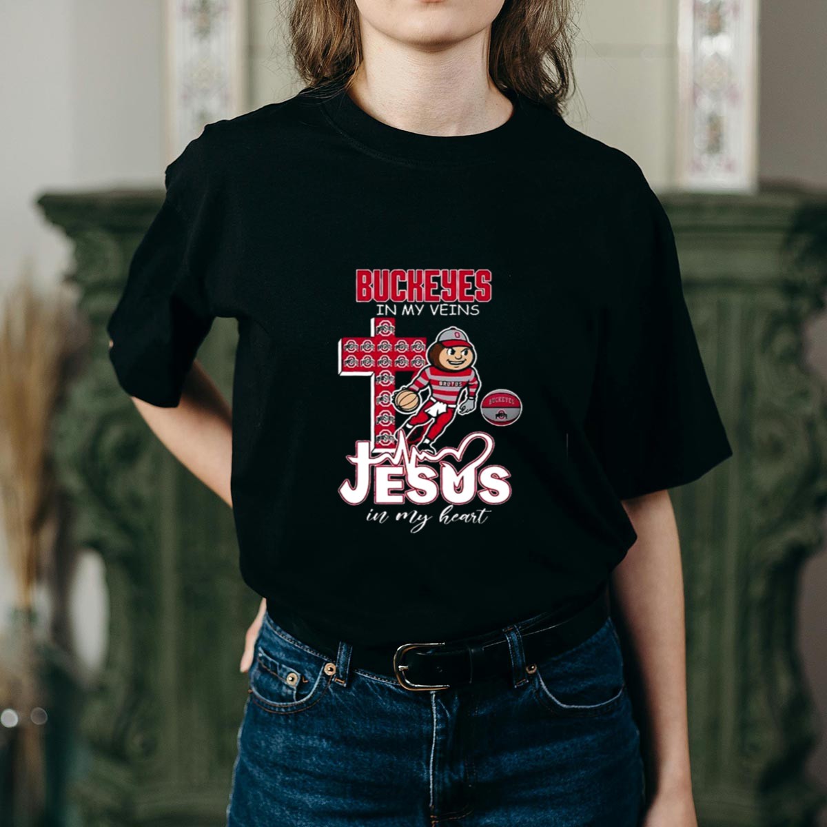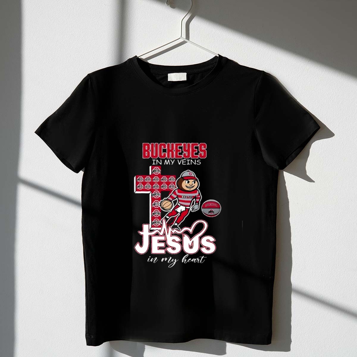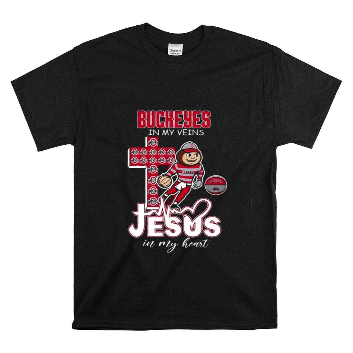 Show your unwavering support for the Ohio State Buckeyes with our “Ohio State Buckeyes In My Veins Jesus In My Heart” T-shirt. Perfect for die-hard fans and casual wearers alike, this shirt combines team spirit with a heartfelt message, making it an ideal choice for game days, themed events, or simply expressing your Buckeyes pride. With a fan-made design printed right here in the USA, this T-shirt is a unique addition to any sports enthusiast’s wardrobe.
