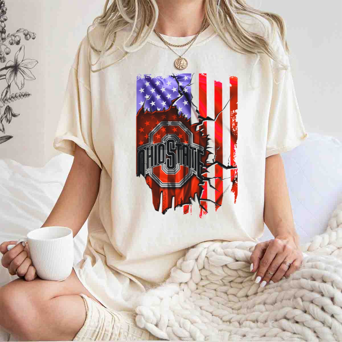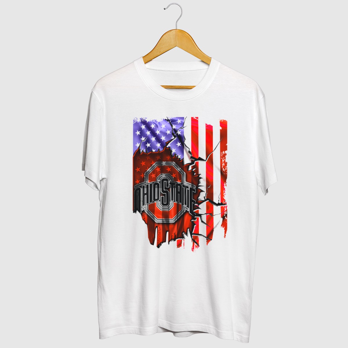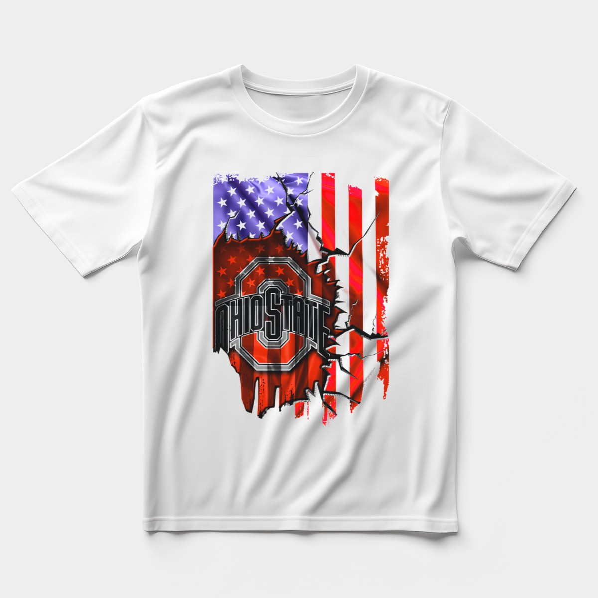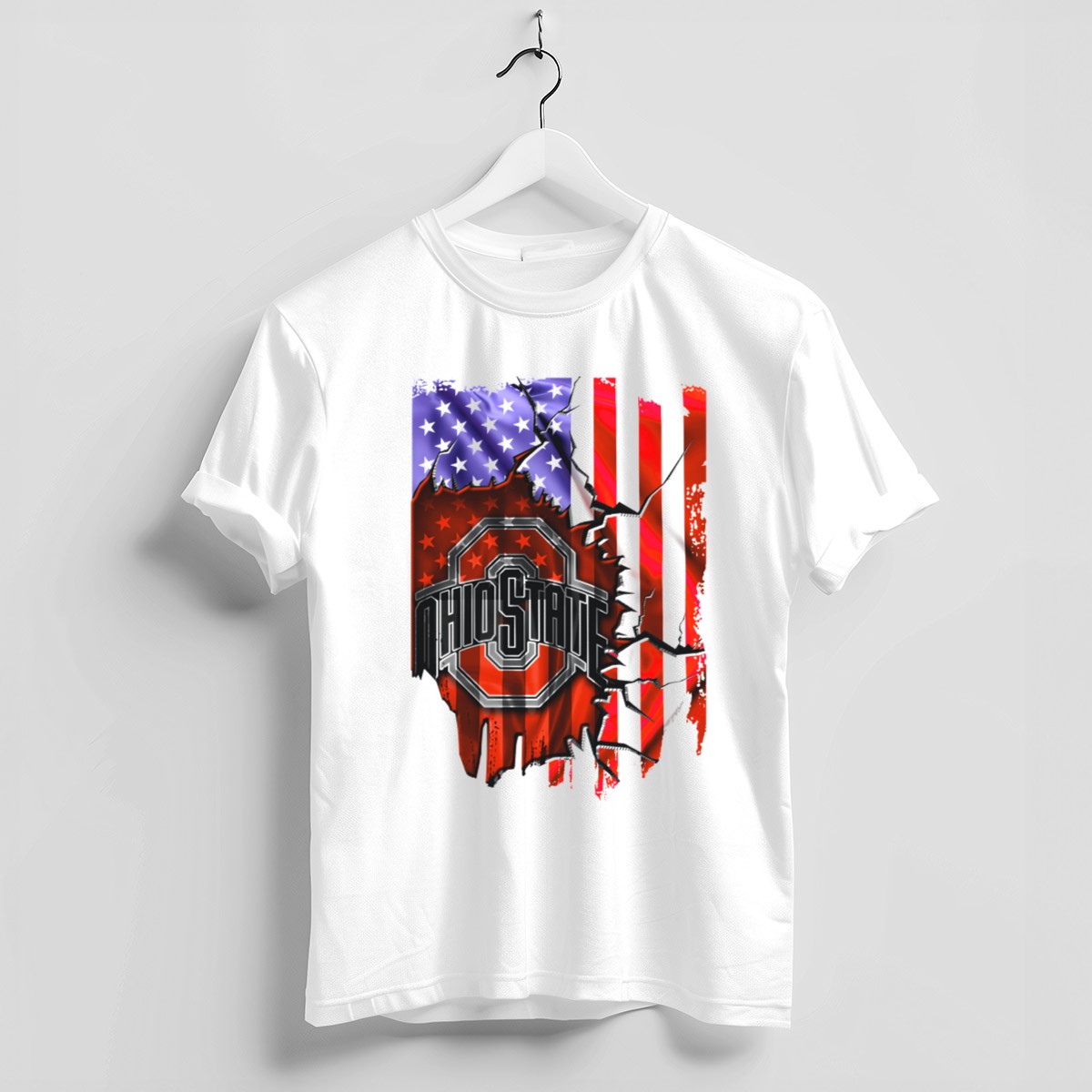 Show your unwavering support for the Ohio State Buckeyes with this uniquely designed T-shirt, featuring the iconic logo against a striking torn American flag background. Perfect for dedicated fans and spirited supporters alike, this shirt is ideal for casual outings, themed events, or just showing off your team pride in everyday wear. Crafted for comfort and style, it’s a must-have addition to any Buckeyes fan’s wardrobe.