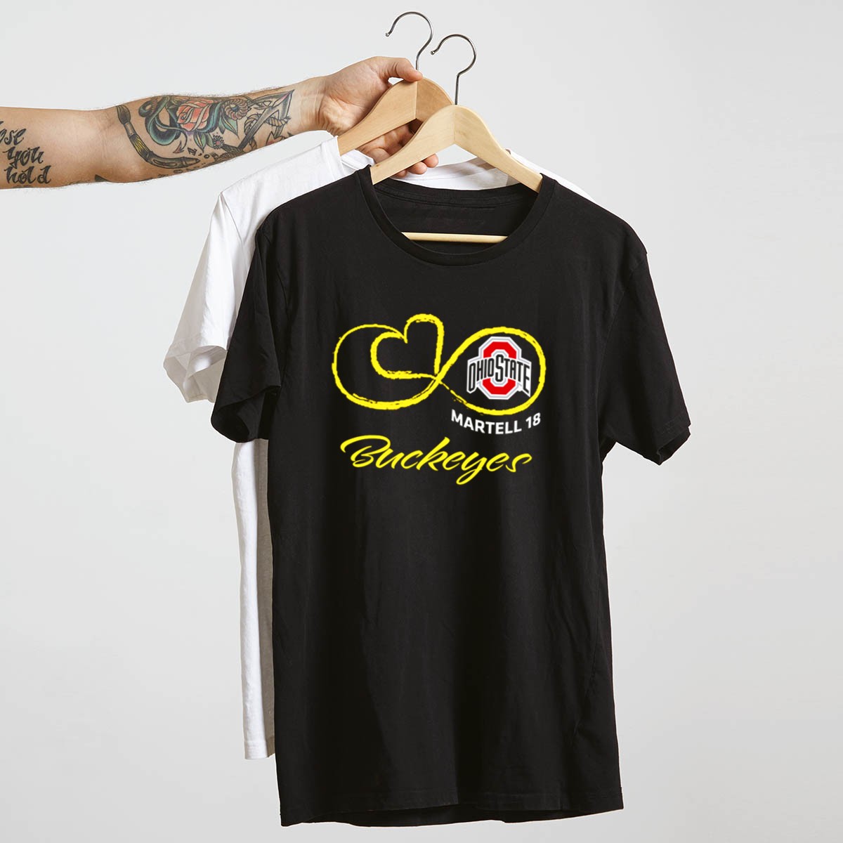 Show your unwavering support for the Ohio State Buckeyes with the Martell 18 Infinity Symbol Football T-Shirt. This fan-made design celebrates the spirit of the game and is perfect for passionate Buckeyes fans looking to showcase their pride. Ideal for casual wear, themed events, or daily outings, this shirt combines style and comfort, making it a must-have for any fan’s wardrobe.