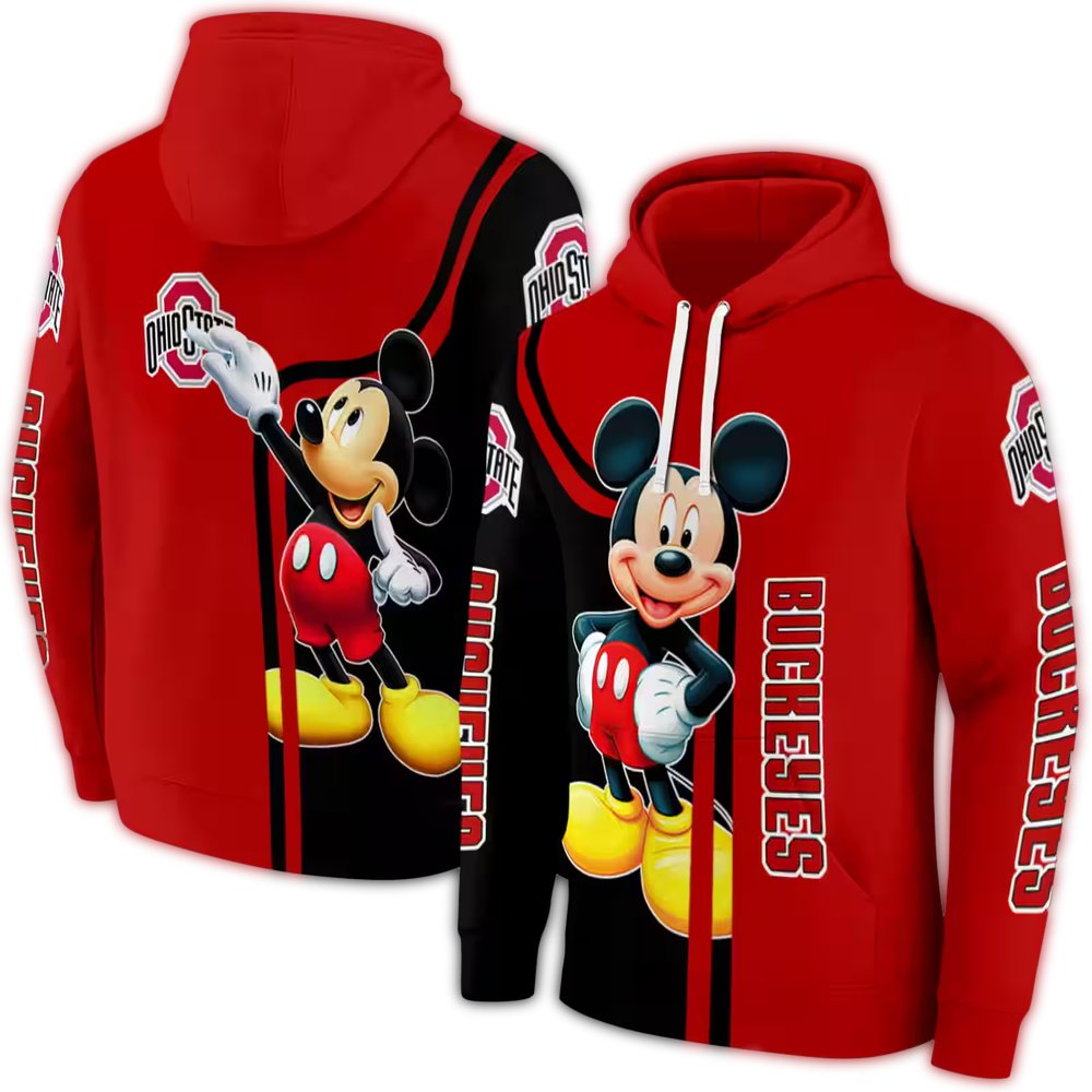 Embrace your love for the Ohio State Buckeyes with our unique Mickey Mouse all-over print hoodie, designed for fans of all ages. Perfect for casual outings, tailgating, or simply lounging at home, this hoodie combines classic team spirit with a fun twist. Its lightweight, cozy fabric ensures you stay comfortable while showcasing your fandom in a stylish way.