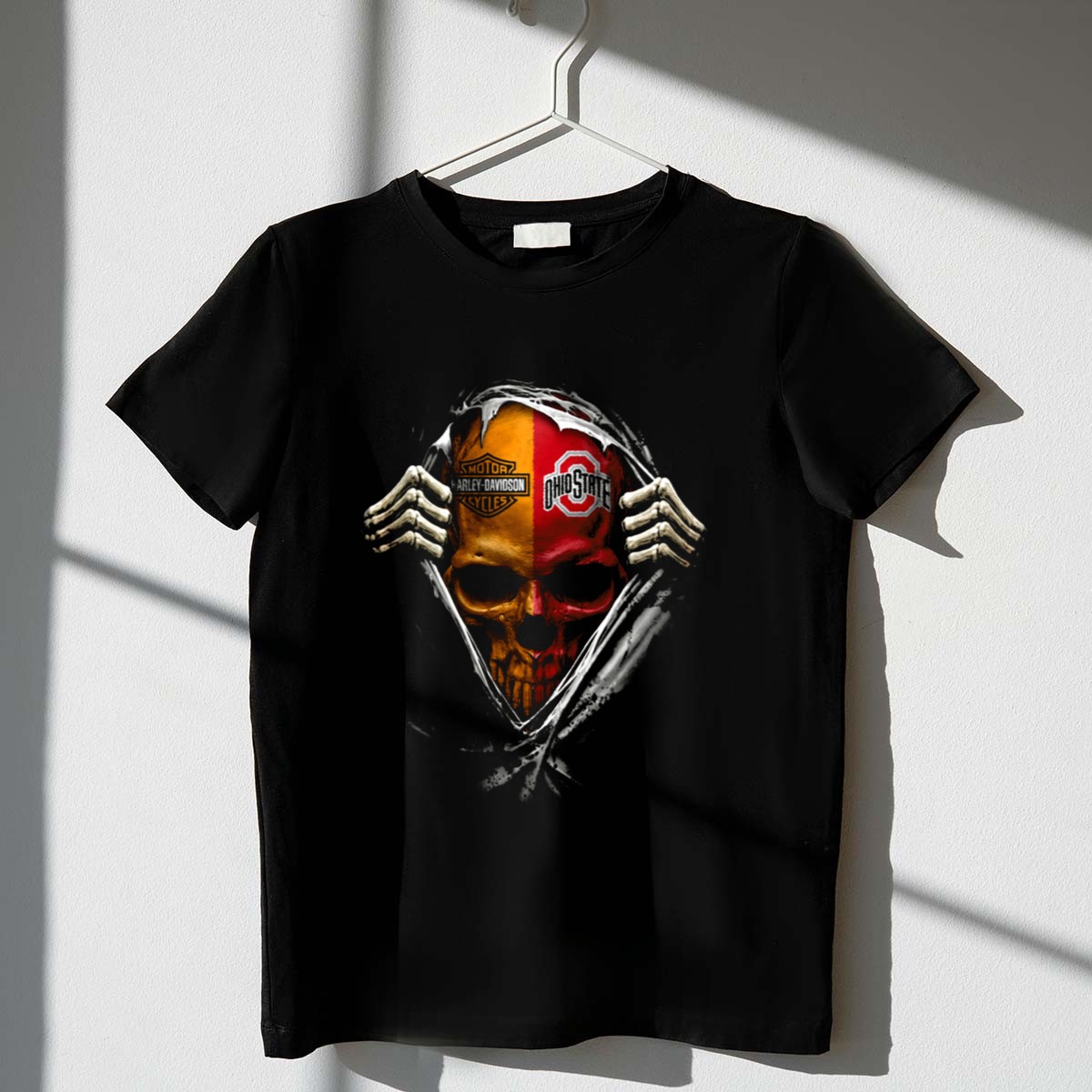 Show your unwavering support for the Ohio State Buckeyes with this unique fan-made T-shirt featuring a bold Harley Davidson skull design. Perfect for die-hard fans, this shirt is ideal for casual outings, themed events, or daily wear while showcasing your team spirit. Made in the USA, this graphic T-shirt combines comfort and style, making it a must-have addition to any Buckeyes fan’s wardrobe.