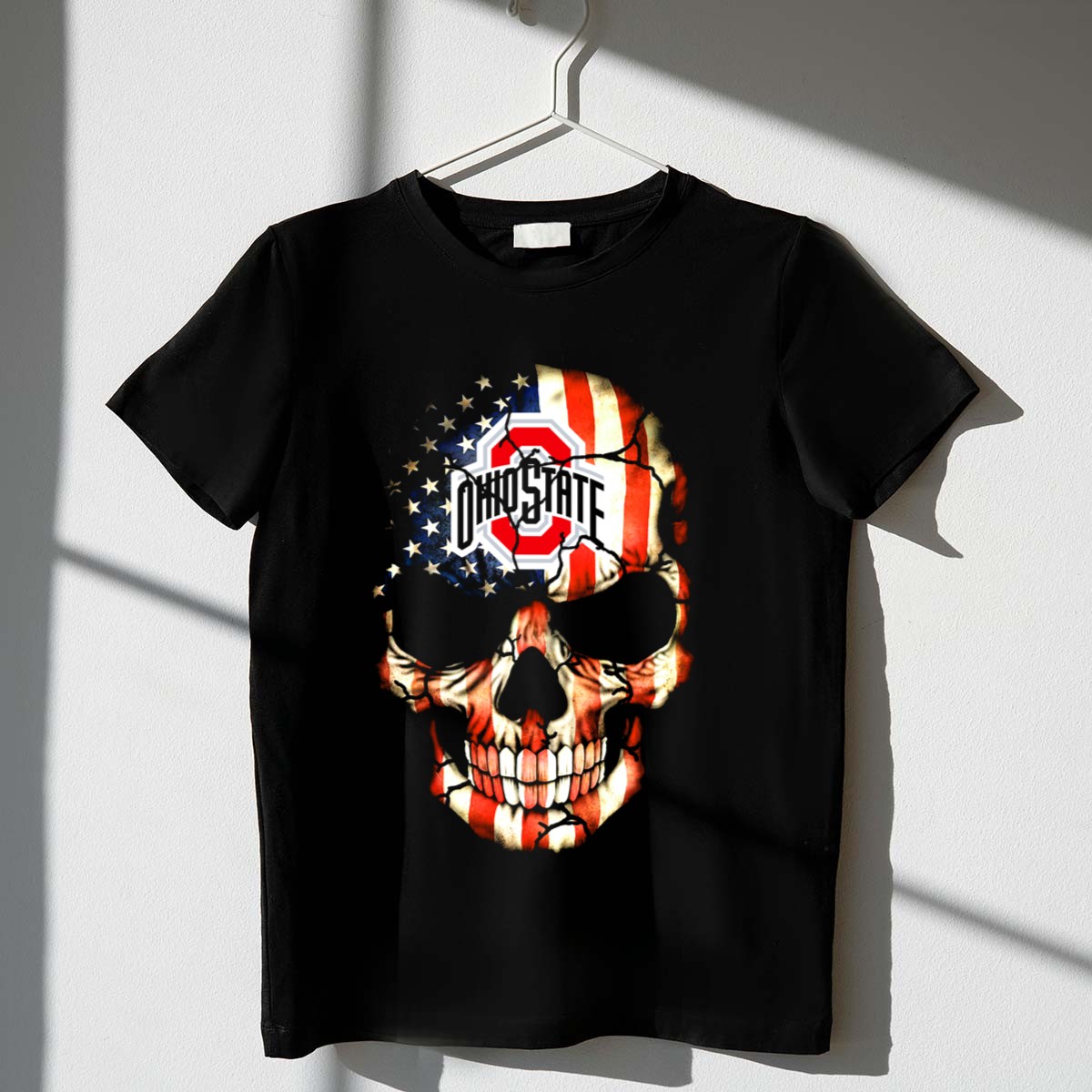 Show off your team spirit with our Ohio State Buckeyes Skull American Flag T-Shirt! This fan-made design is perfect for die-hard Buckeyes fans who want to showcase their pride in a unique and stylish way. Whether you’re heading to a game, a casual get-together, or just running errands, this shirt is the ideal choice for any occasion. Crafted with comfort and durability in mind, it’s a must-have addition to your wardrobe!