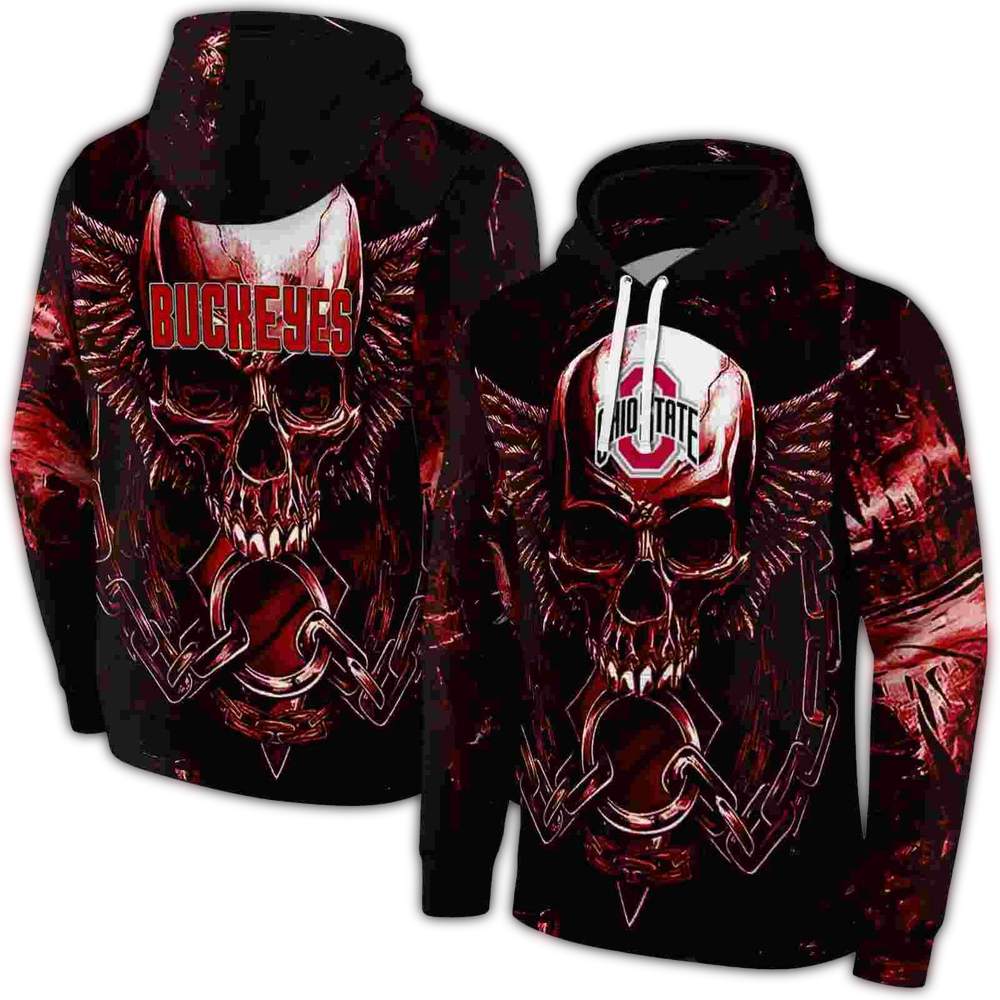 Introducing the Ohio State Buckeyes Skull Artwork All-Over Print Hoodie, the perfect addition to any fan’s wardrobe. This unique piece is designed for those who want to showcase their team spirit while enjoying ultimate comfort. Ideal for casual outings, game days, or cozy nights in, this hoodie combines style with functionality, making it a must-have for any Buckeyes enthusiast.