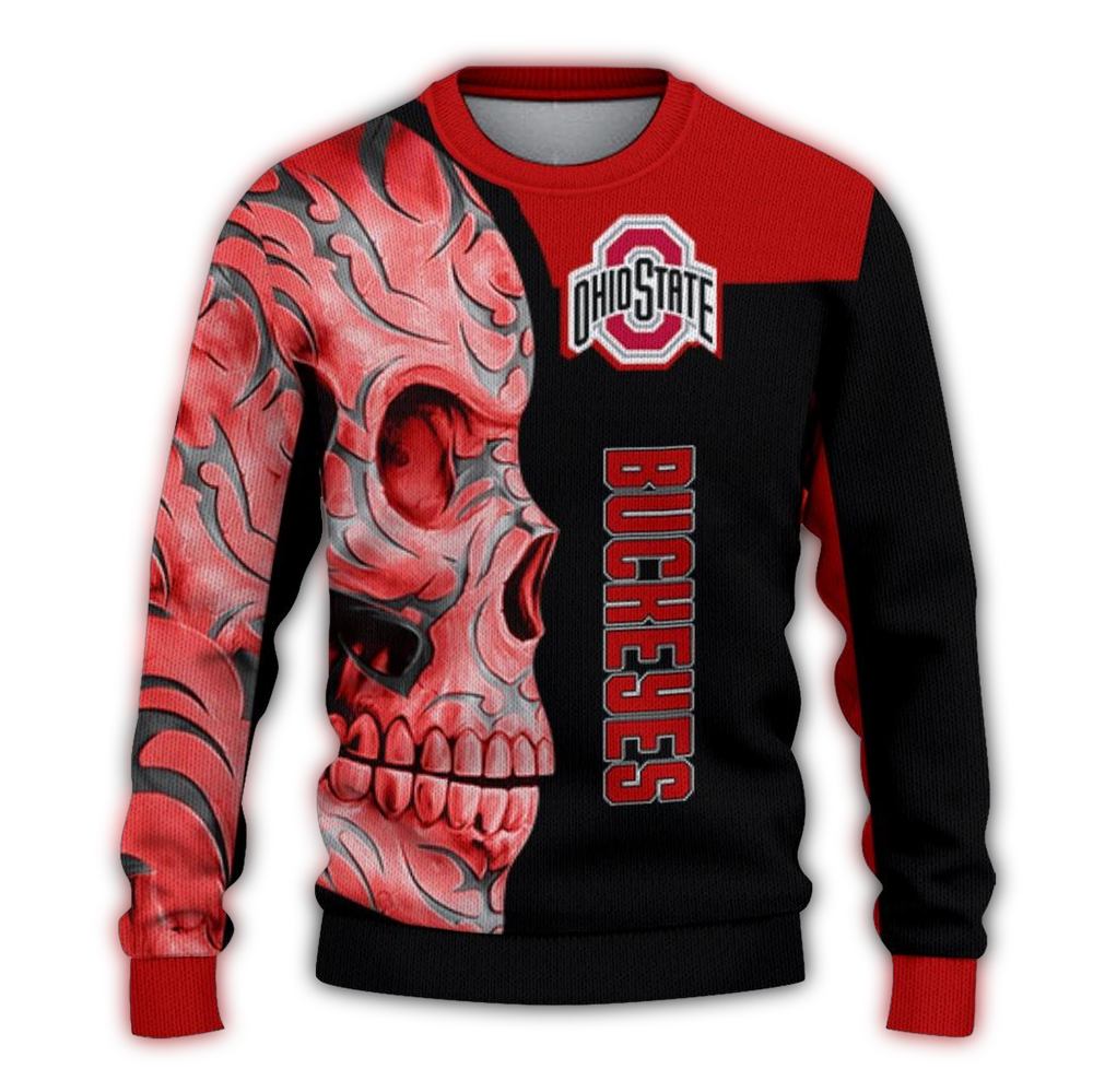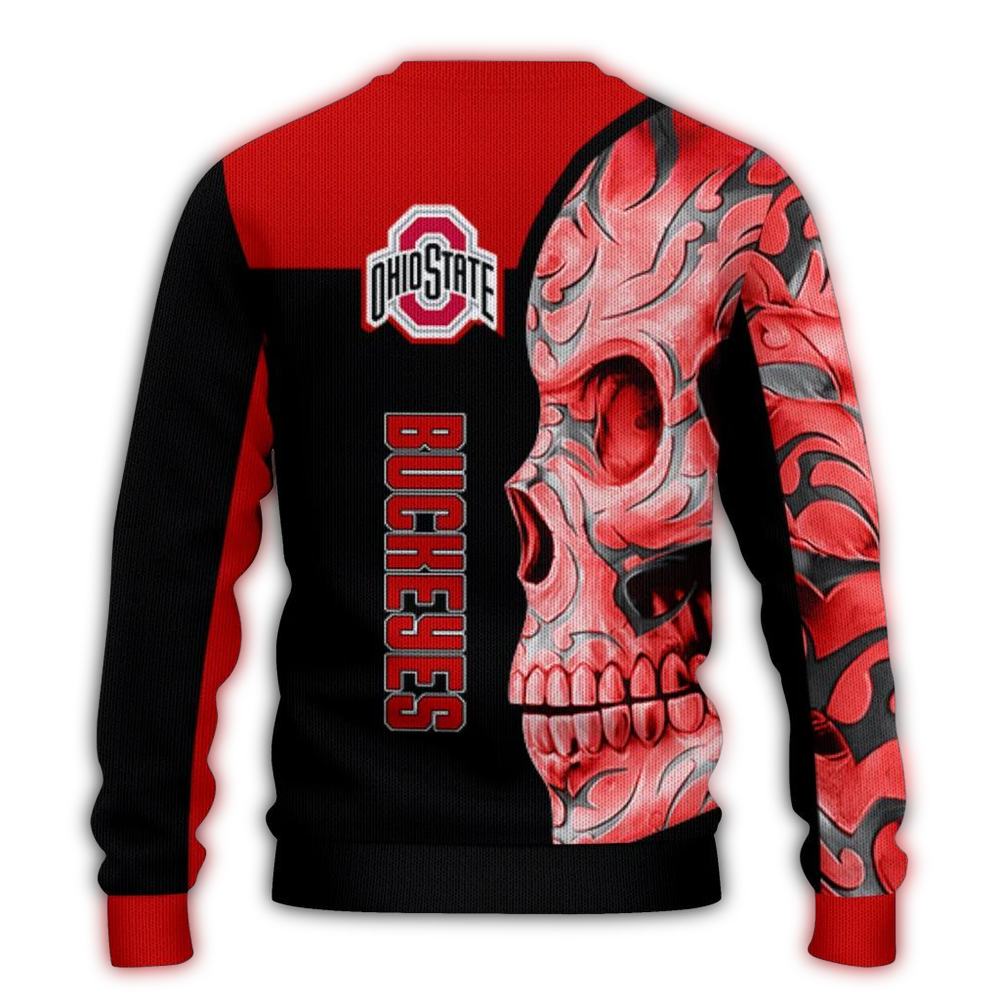 Get ready to show off your team spirit with our Ohio State Buckeyes Skull Swirl Ugly Sweater! Perfect for die-hard Buckeyes fans, this fun and festive sweater is ideal for holiday parties, game days, or just lounging around at home while cheering on your favorite team. Its unique design brings a lively twist to your winter wardrobe, making you the life of the party wherever you go!