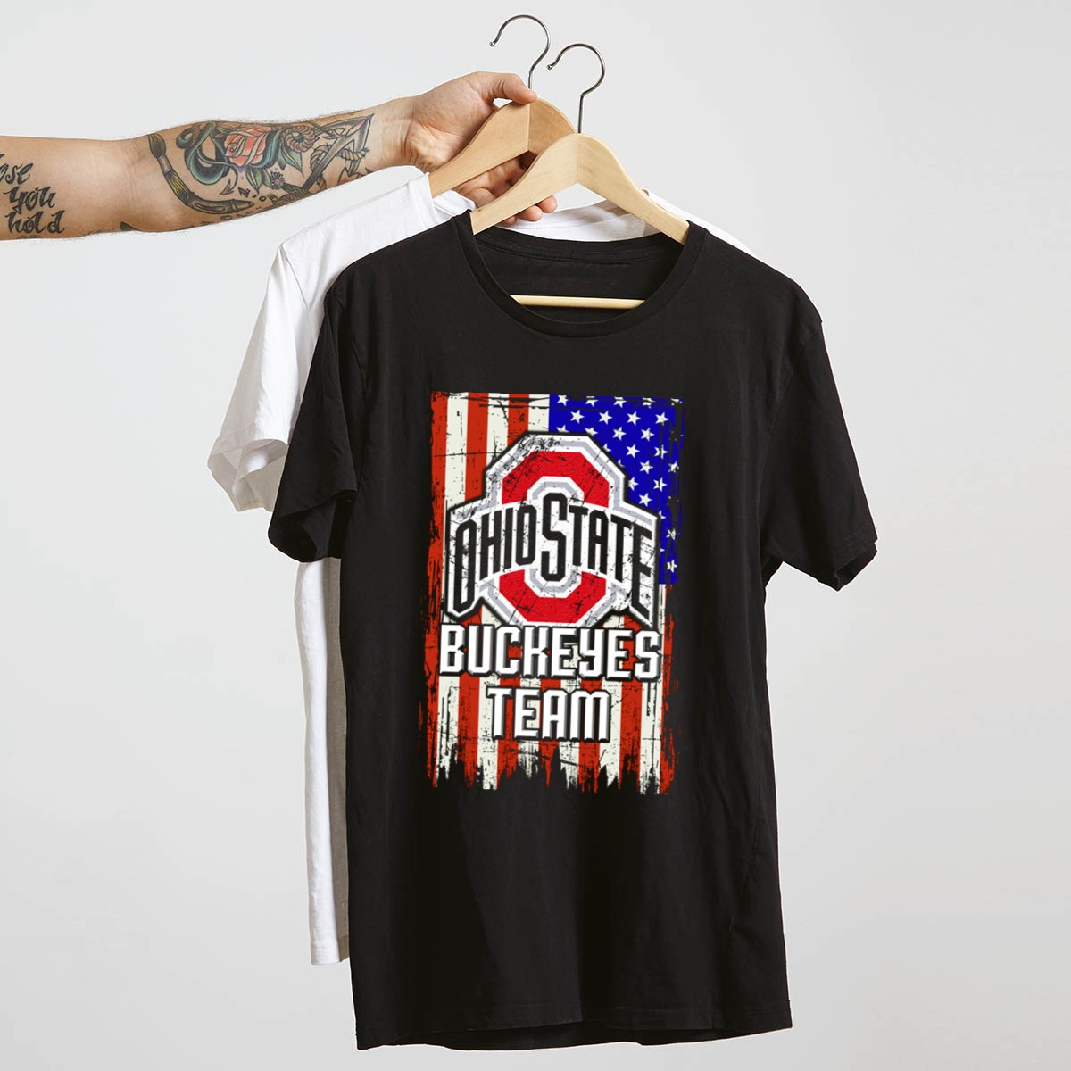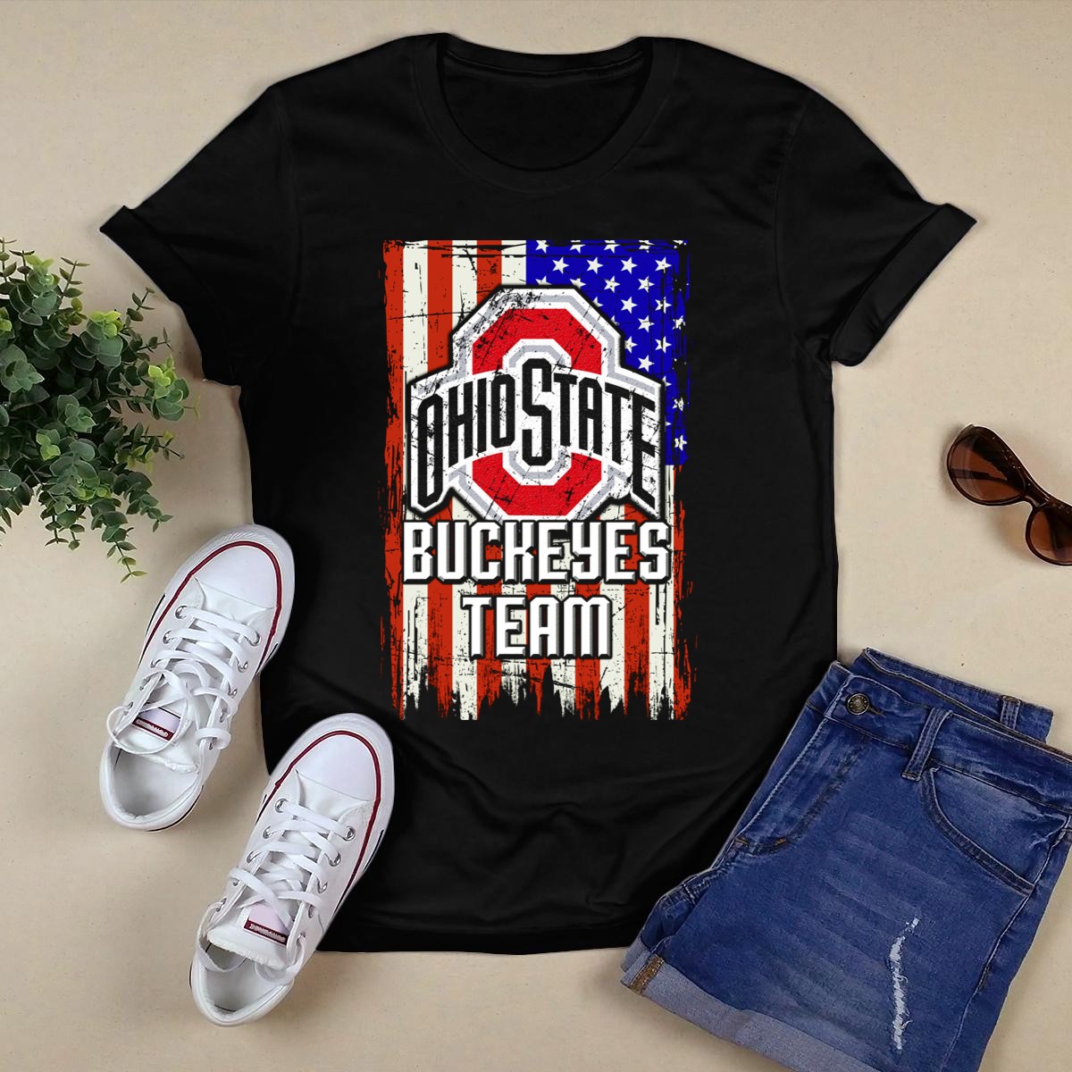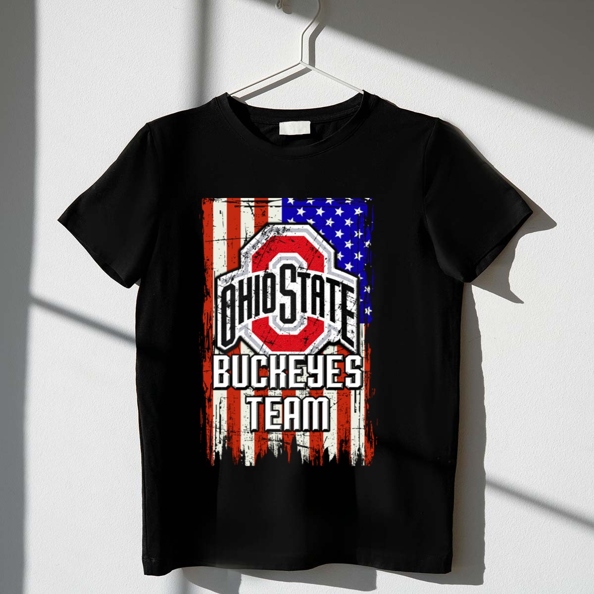 Show your unwavering support for the Ohio State Buckeyes with this eye-catching Team USA Flag T-Shirt. Perfect for die-hard fans and casual wearers alike, this shirt combines a patriotic flair with a love for your favorite team. Whether you’re cheering from the stands, hosting a themed event, or enjoying a day out, this soft and durable tee will keep you comfortable while showcasing your Buckeye pride. Made with care in the USA, it’s a must-have for every Ohio State fan!