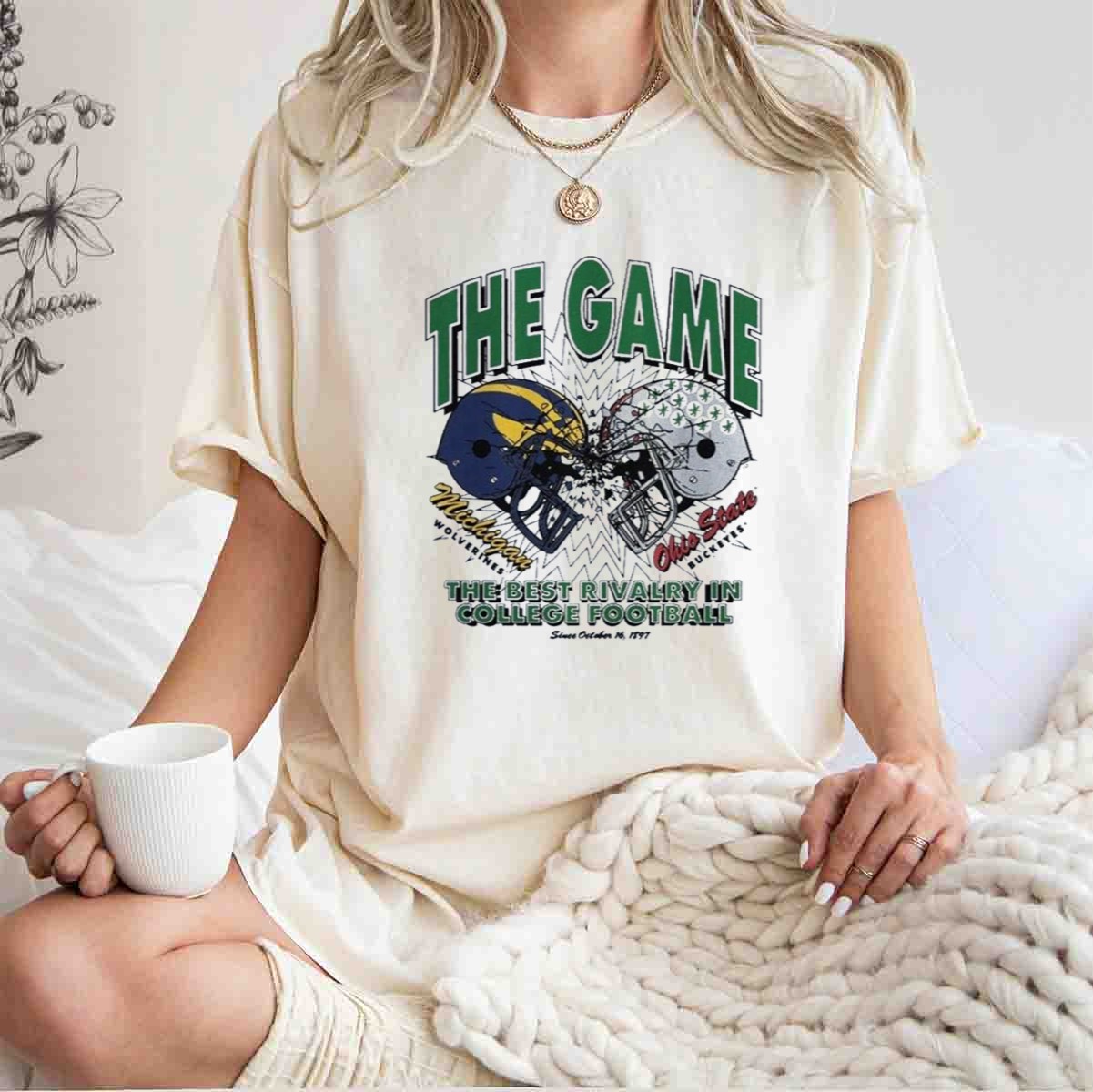Show your team spirit with the Ohio State Buckeyes vs. Michigan Wolverines 2025 The Game Matchup T-Shirt! Perfect for passionate fans, this shirt is ideal for casual outings, themed events, or daily wear as you cheer on your favorite team. Made with a unique fan-made design printed in the USA, this shirt stands out in any crowd and celebrates one of college football’s most storied rivalries.