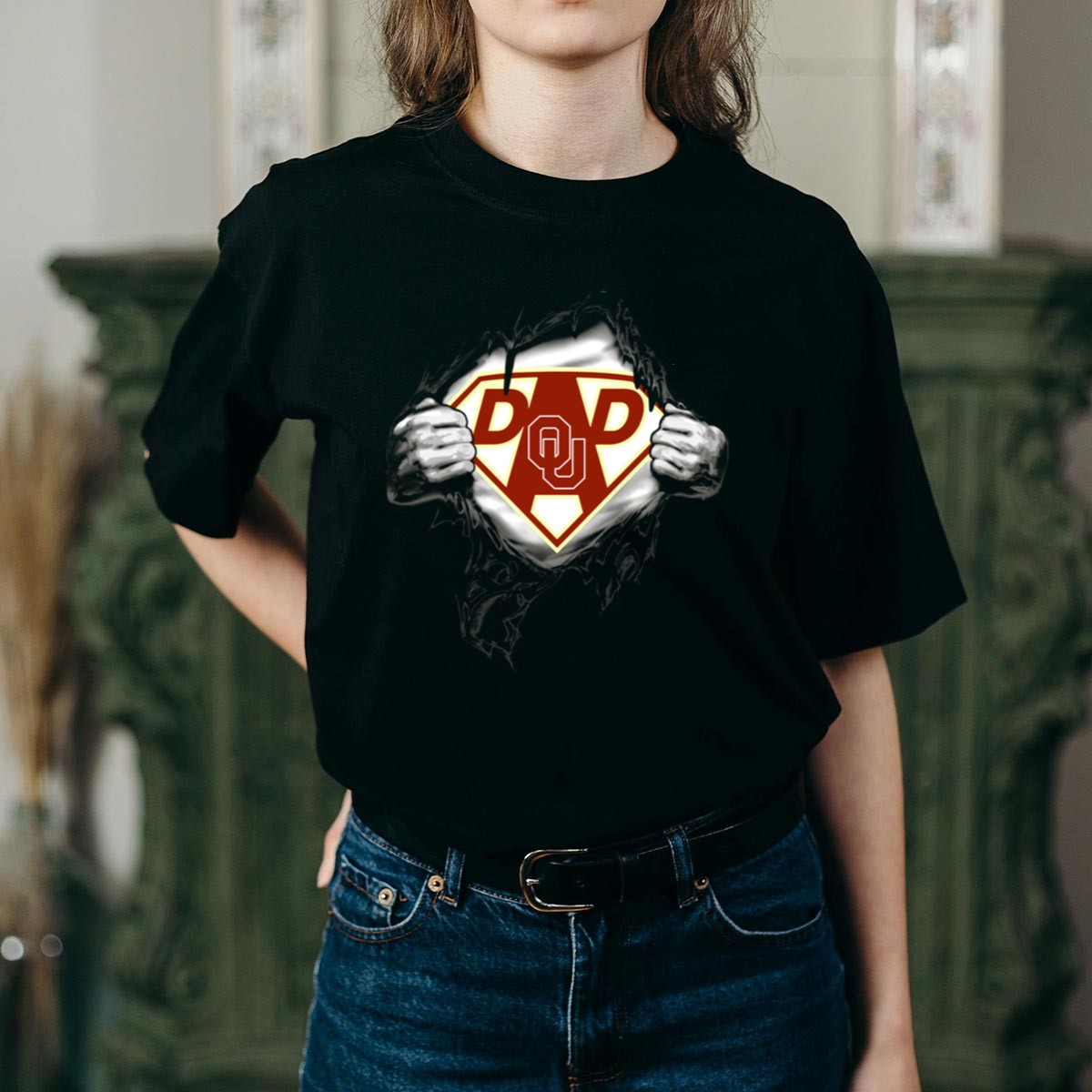 Show your pride for the Oklahoma Sooners with our Dad Ou Super Hero T-Shirt, designed for the ultimate fan. This shirt is perfect for game days, casual outings, or themed events, making it a versatile addition to your wardrobe. Crafted for comfort and style, it features a unique fan-made design printed right here in the USA, ensuring you stand out while supporting your favorite team.