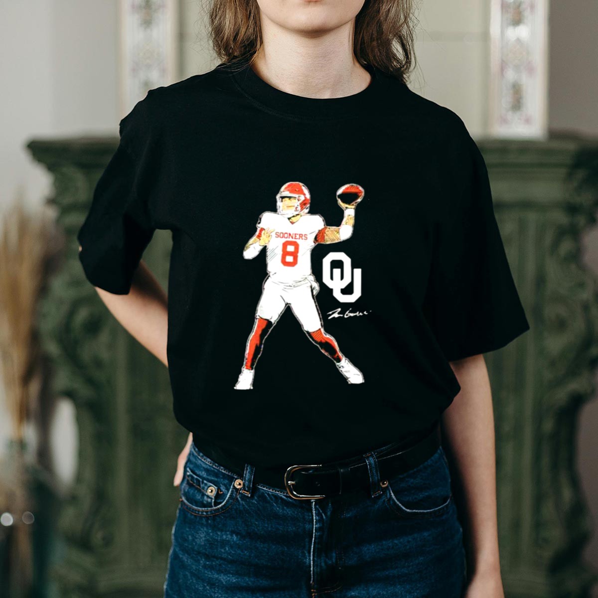 Oklahoma Sooners Football Dillon Gabriel Number 8 Superstar Pose Signature Ou T-Shirt