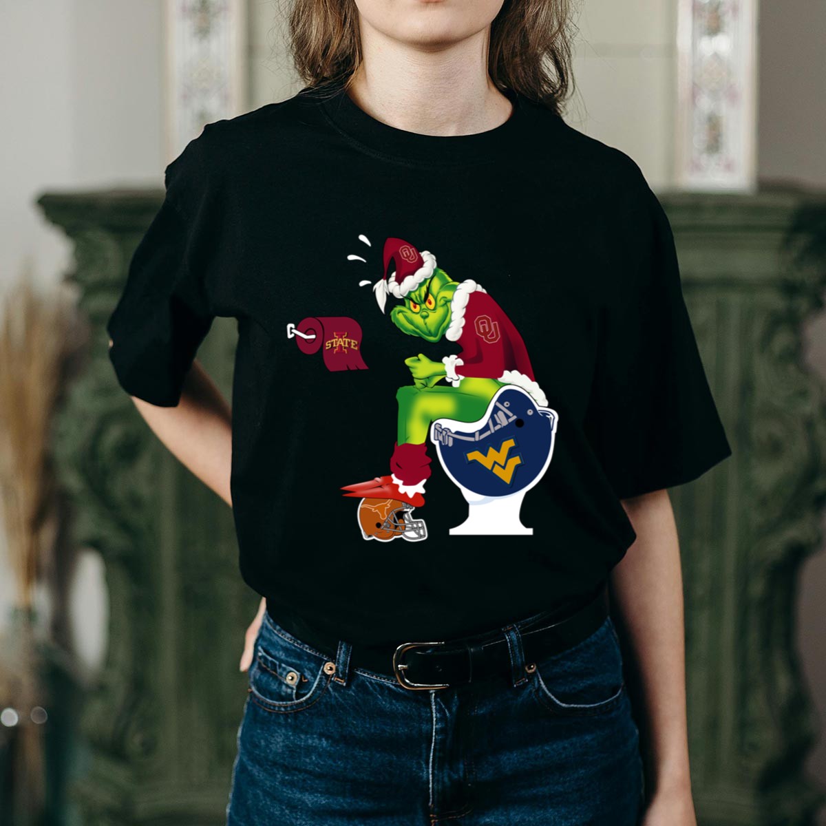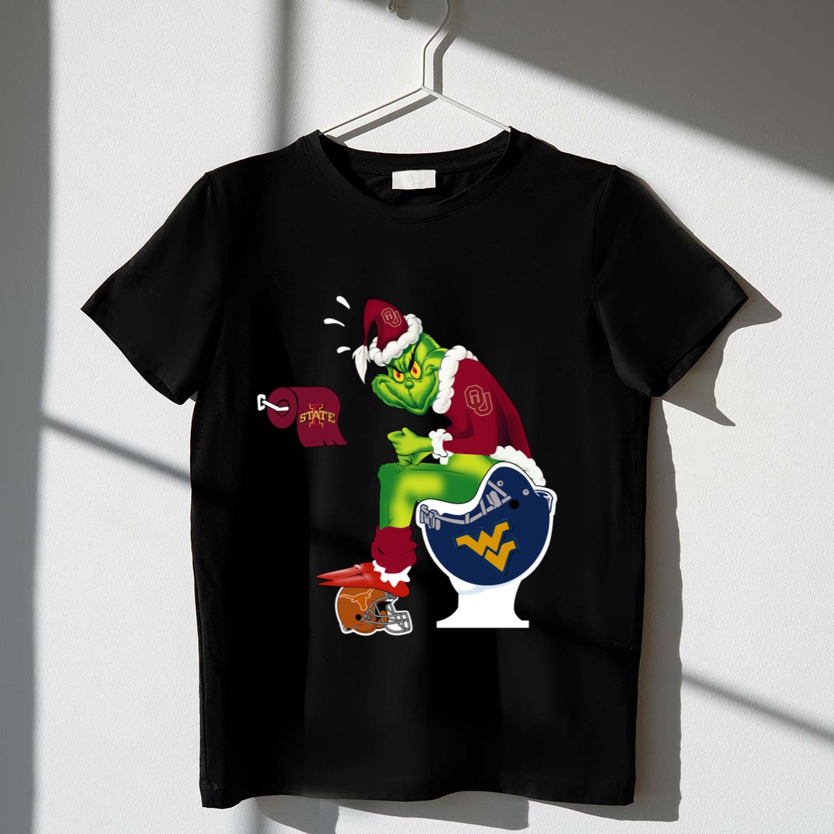 Celebrate the holiday spirit with our Oklahoma Sooners Grinch Santa Toilet Christmas Shirt! This fun and festive tee is perfect for fans who love to blend their passion for the Sooners with a touch of humor. Ideal for casual wear, themed events, or daily outings during the holiday season, this shirt features a playful design that’s sure to bring smiles wherever you go. With its fan-made print proudly produced in the USA, you’ll not only showcase your team pride but also your unique sense of style.