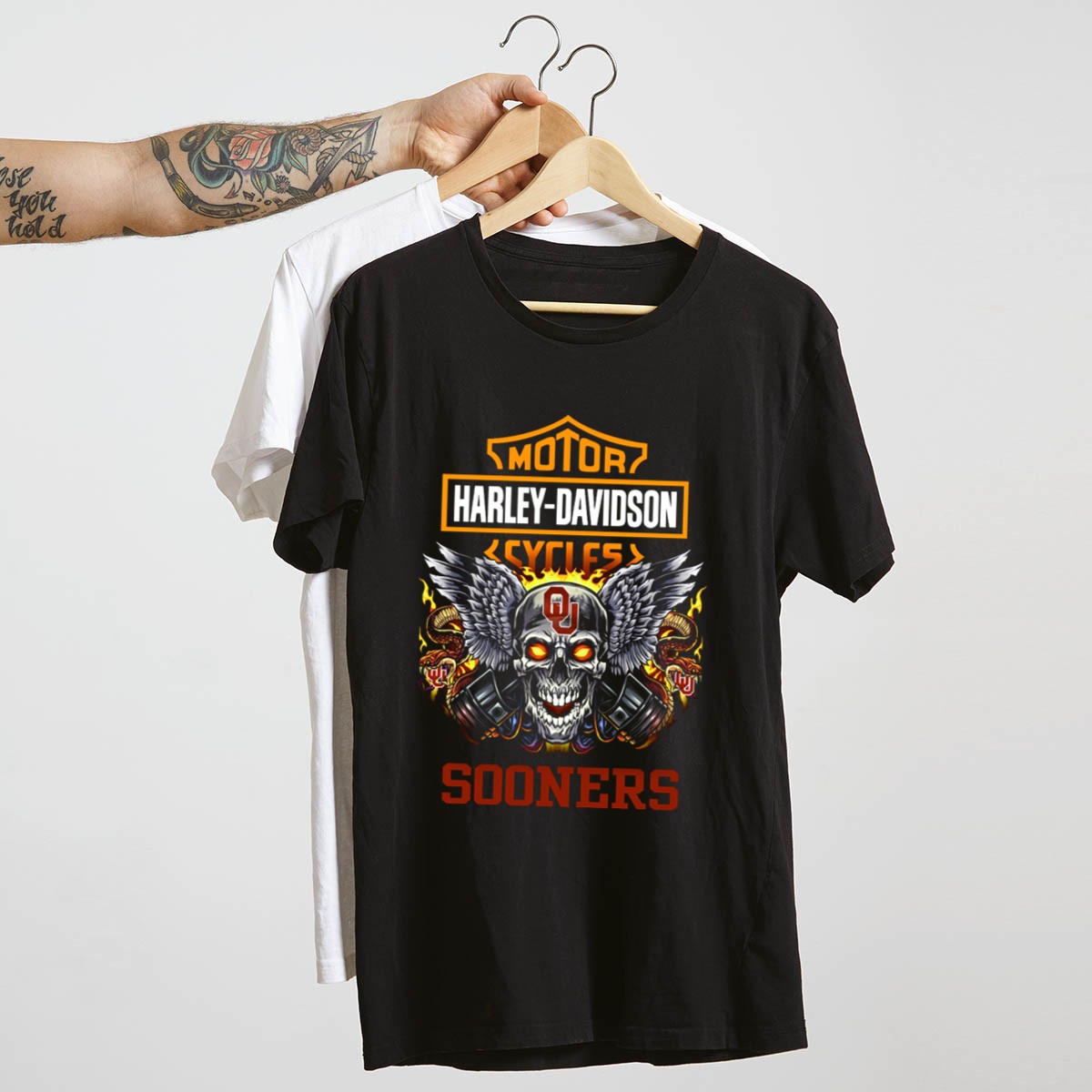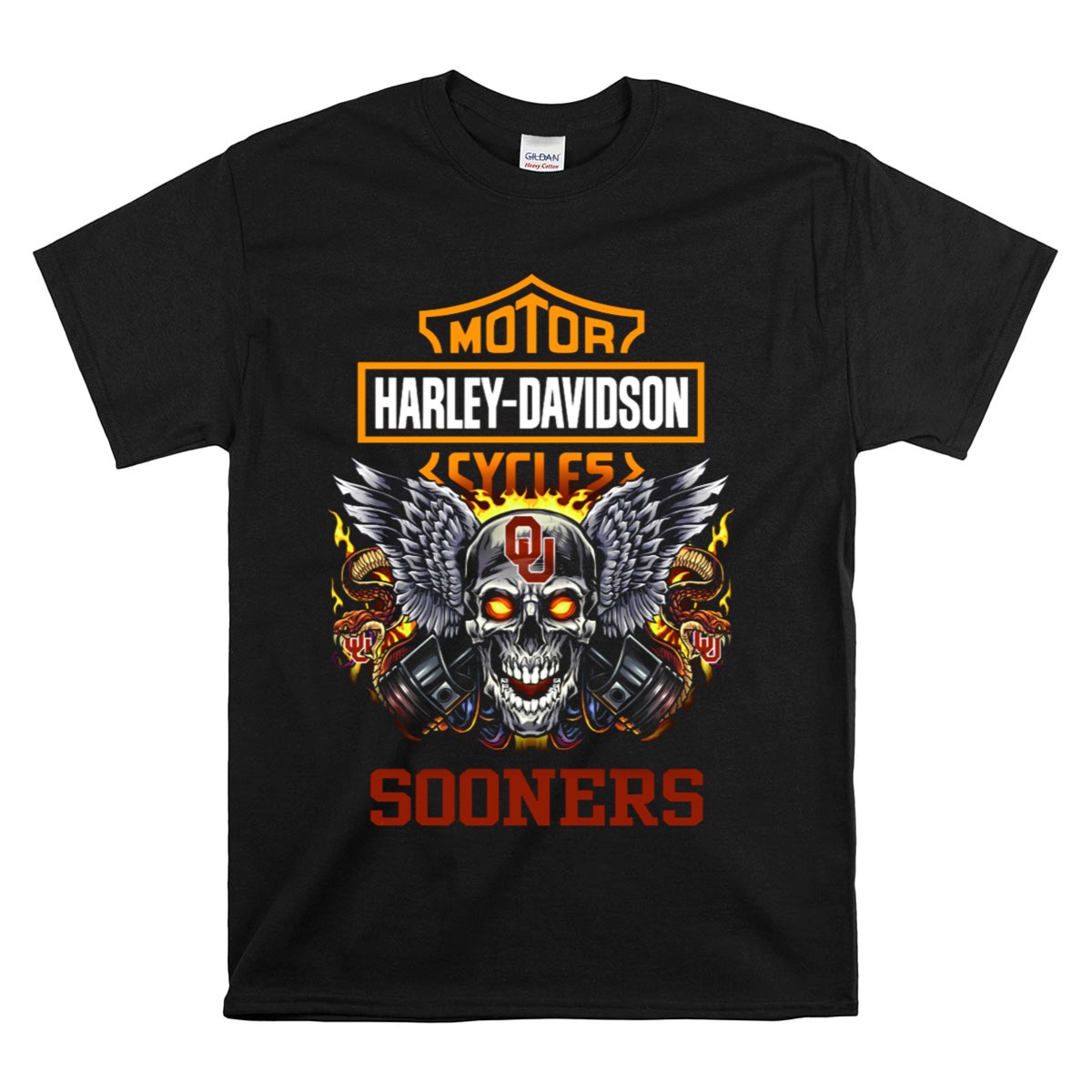 Show your unwavering support for the Oklahoma Sooners with our HD Motor Cycles Skull Wings T-Shirt. This fan-made design is perfect for die-hard fans who enjoy casual wear while showcasing their team spirit. Whether you’re attending a themed event, hanging out with friends, or just lounging at home, this shirt combines comfort and style, making it an essential addition to your wardrobe. Proudly printed in the USA, it’s a unique way to represent your favorite team.