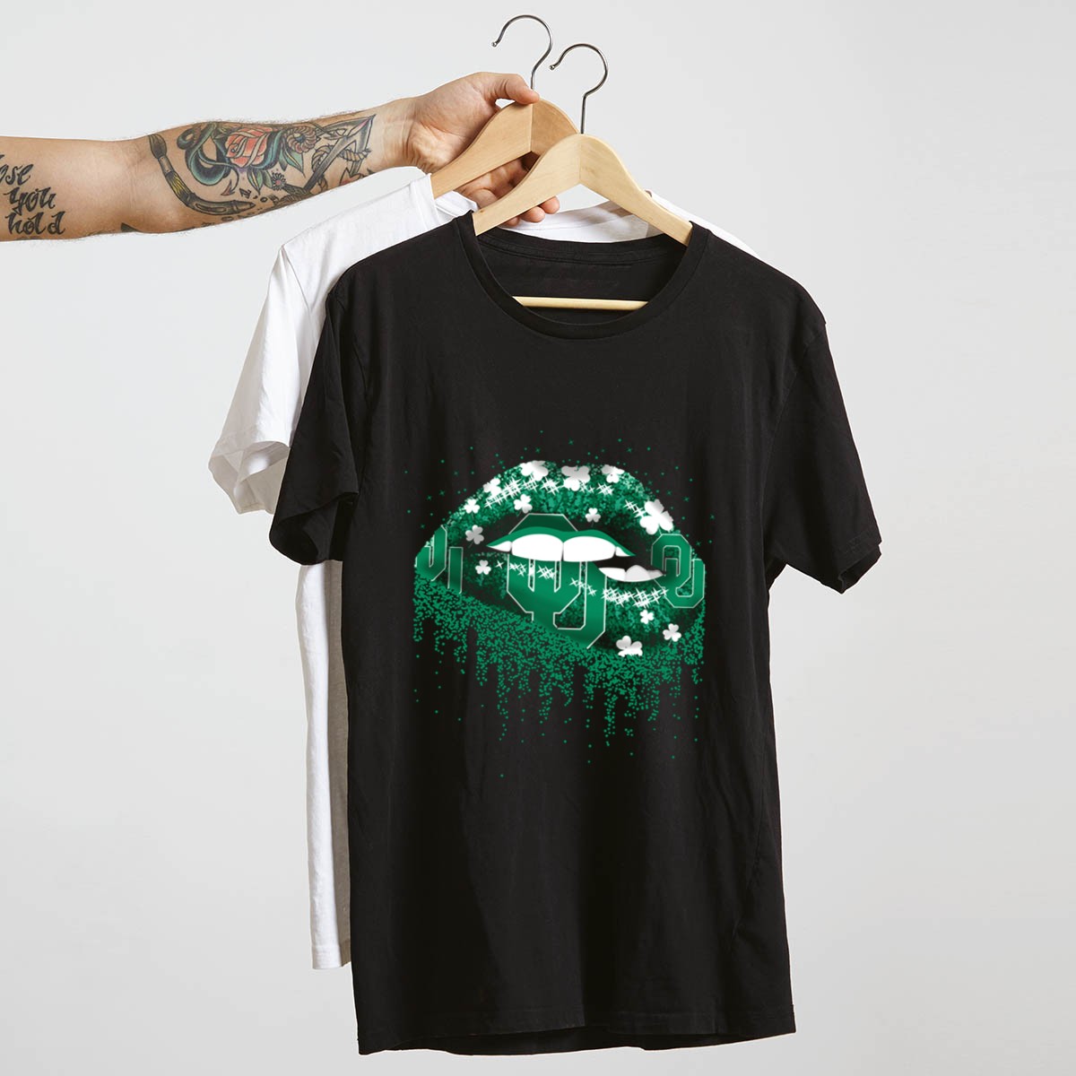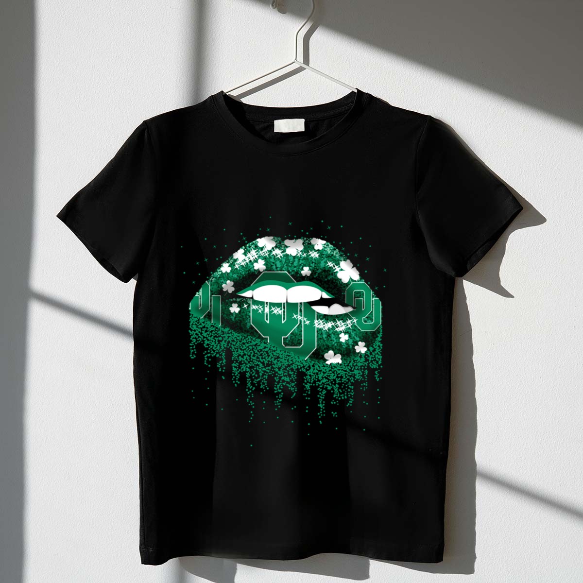 Show off your Oklahoma Sooners spirit with our Lips Green Shamrock Sparkle T-Shirt! This trendy and fun T-shirt is perfect for die-hard fans who want to add a touch of sparkle to their casual wear. Whether you’re heading to a themed event, cheering on the Sooners at a game, or just enjoying a laid-back day, this shirt combines comfort and style effortlessly. Made for all-season wear, it’s a must-have addition to any fan’s wardrobe!