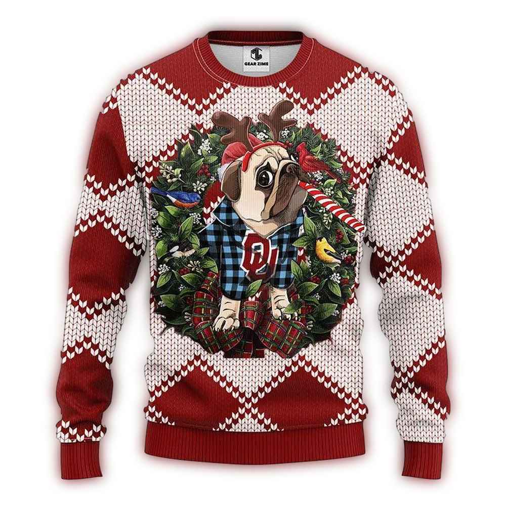 Get ready to cheer on the Oklahoma Sooners this holiday season with our Pub Dog Christmas Ugly Sweater! Perfect for fans and dog lovers alike, this festive piece is ideal for game day gatherings, holiday parties, or simply snuggling up at home. With its fun design and cozy fit, it’s sure to bring smiles and warmth to your winter celebrations!