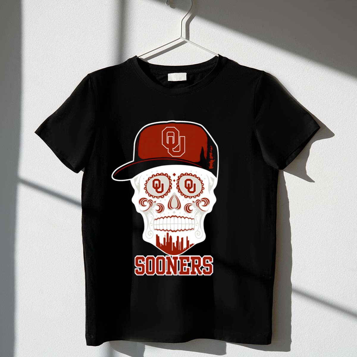 Show your Oklahoma Sooners pride with our exclusive Skull Ou Hat T-Shirt, perfect for die-hard fans and casual wearers alike. This fan-made design captures the spirit of the Sooners, making it an ideal choice for game days, themed events, or just hanging out with friends. Crafted with comfort and durability in mind, this classic fit t-shirt is a must-have addition to your wardrobe.