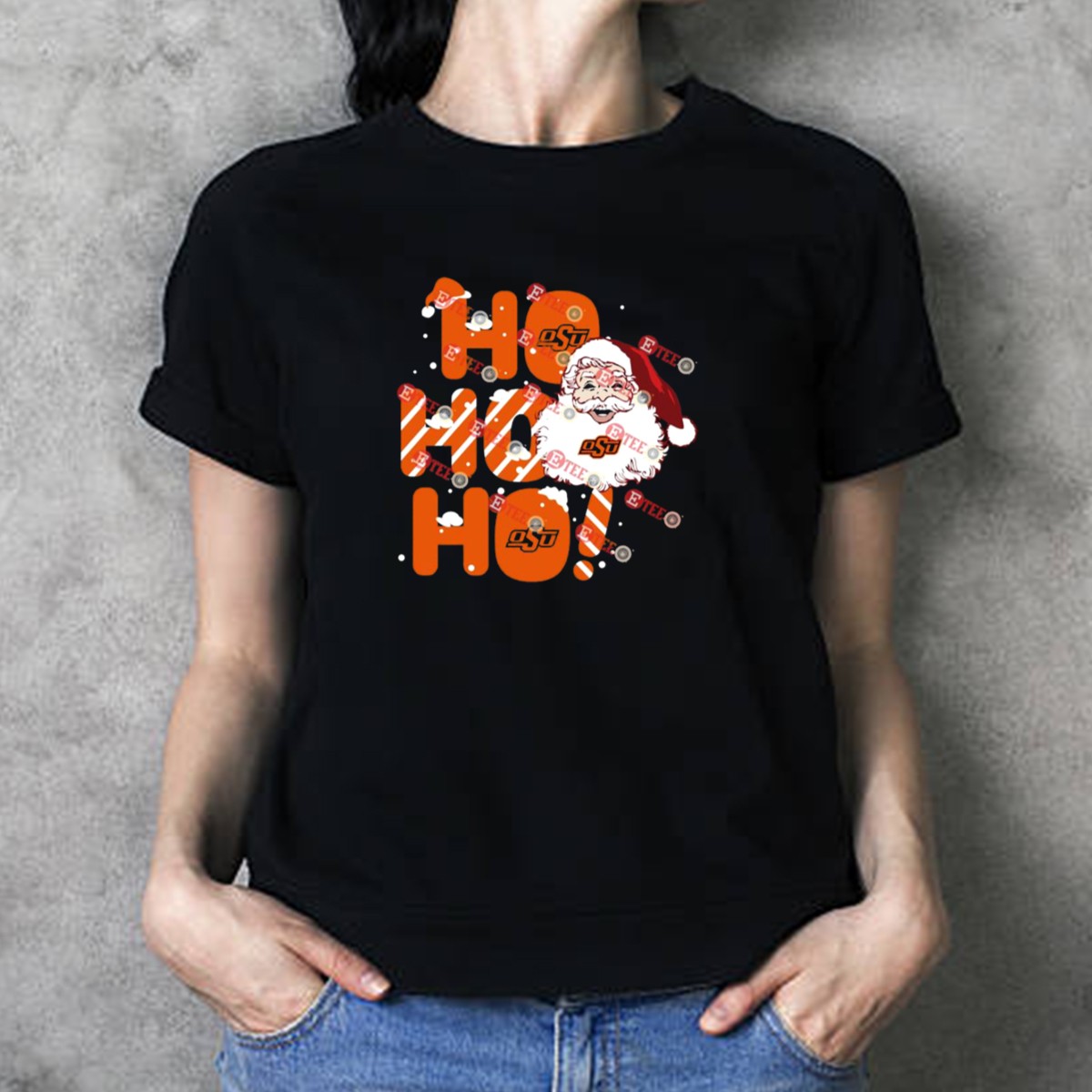 Get into the holiday spirit with our fan-made Oklahoma State Cowboys Osu Santa Claus Ho Ho Ho Christmas T-Shirt! Perfect for die-hard fans and festive gatherings alike, this shirt combines school pride with a fun, seasonal twist. Whether you’re attending a game, celebrating with friends, or just enjoying a casual day out, this classic tee is a must-have to showcase your love for the Cowboys while spreading holiday cheer. Printed right here in the USA, it’s a unique addition to your wardrobe that brings joy and style to any occasion.