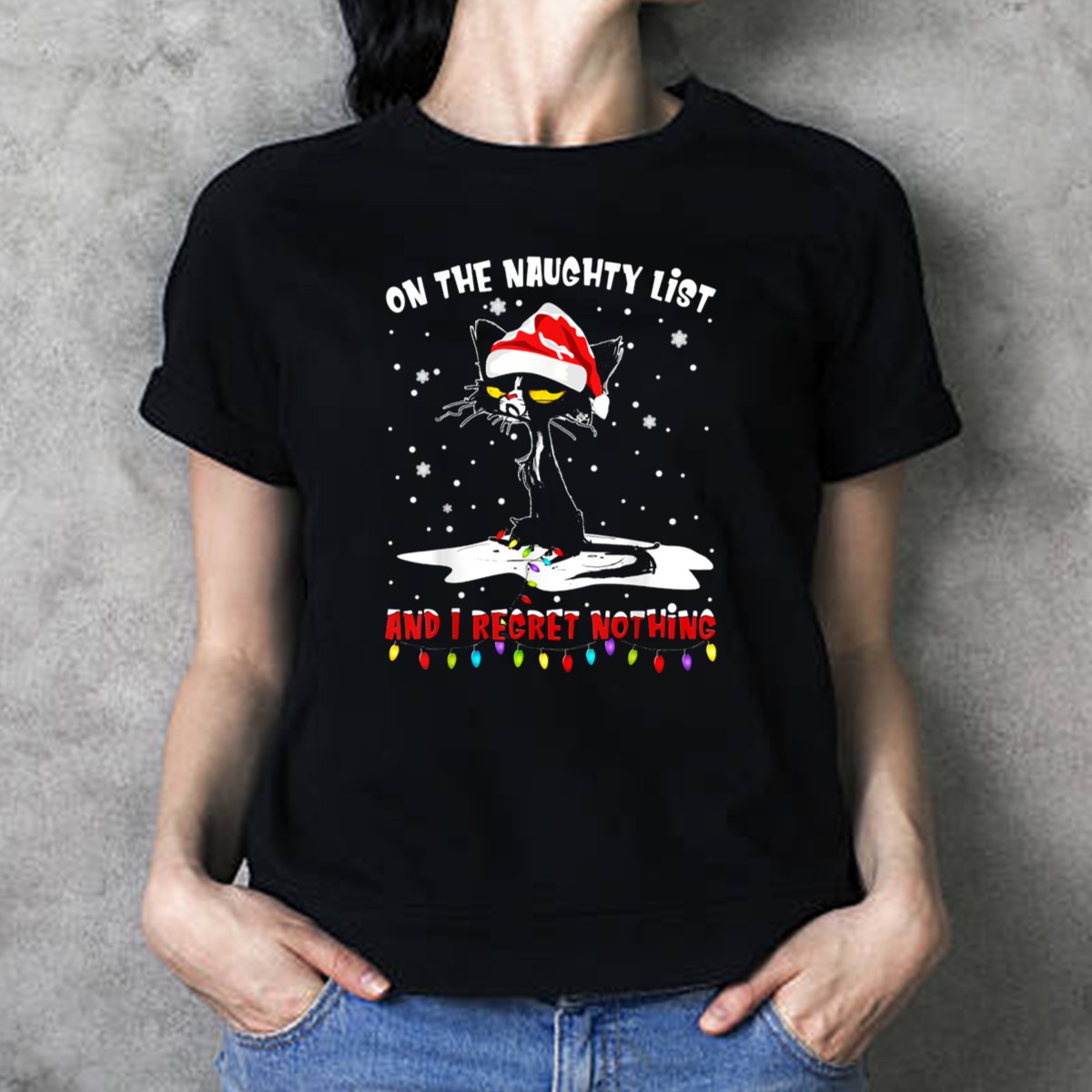 Embrace the holiday spirit with our “On The Naughty List Cat And I Regret Nothing” T-shirt, perfect for cat lovers and those who enjoy a dash of mischief during the festive season. This fan-made design, printed in the USA, features a playful cat donning a Santa hat, making it an ideal choice for casual gatherings, themed events, or simply spreading cheer while lounging at home. With its soft and breathable fabric, this shirt ensures you stay comfortable while showcasing your fun and festive side.