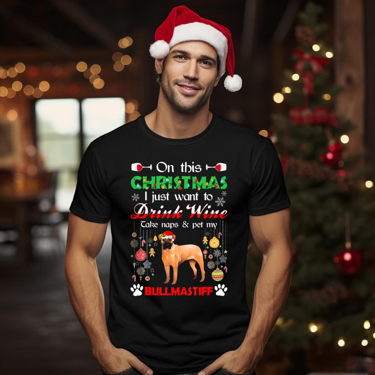 Celebrate the festive season in style with our “On This Christmas I Just Want To Drink Wine Take Naps And Pet My Bullmastiff” T-Shirt! Perfect for dog lovers and wine enthusiasts alike, this shirt brings a sense of humor and warmth to your holiday gatherings. Whether you’re lounging at home, attending a casual party, or just out running errands, this fan-made design, printed in the USA, makes a unique statement about your love for relaxation and your furry friend.