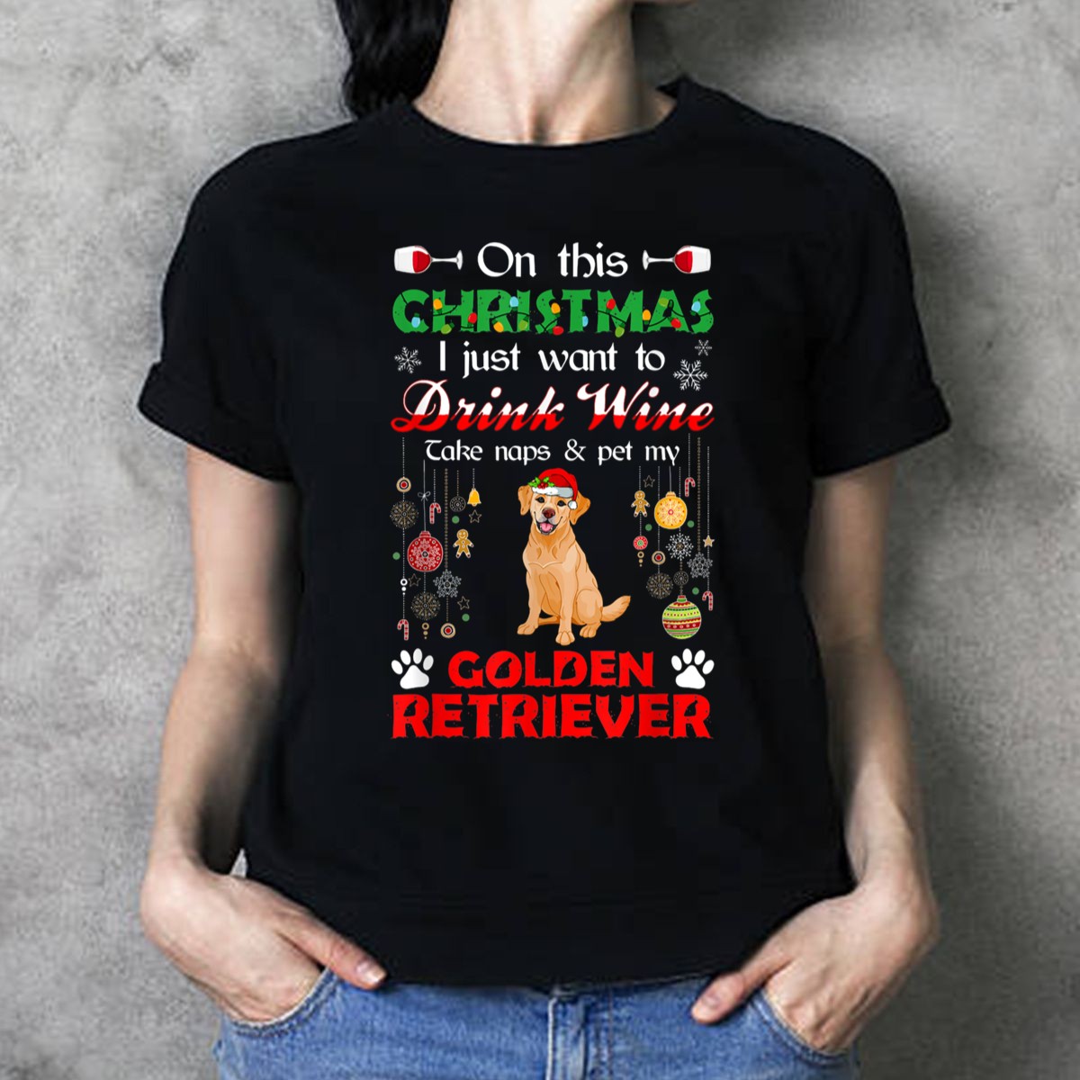 Celebrate the cozy holiday spirit with our “On This Christmas I Just Want To Drink Wine, Take Naps, And Pet My Golden Retriever” T-shirt! Perfect for dog lovers and wine enthusiasts alike, this shirt is designed for those who cherish the simple pleasures of the season. With its fan-made design printed in the USA, it adds a fun twist to your casual wear, making it ideal for themed events, family gatherings, or just lounging at home with your furry friend.
