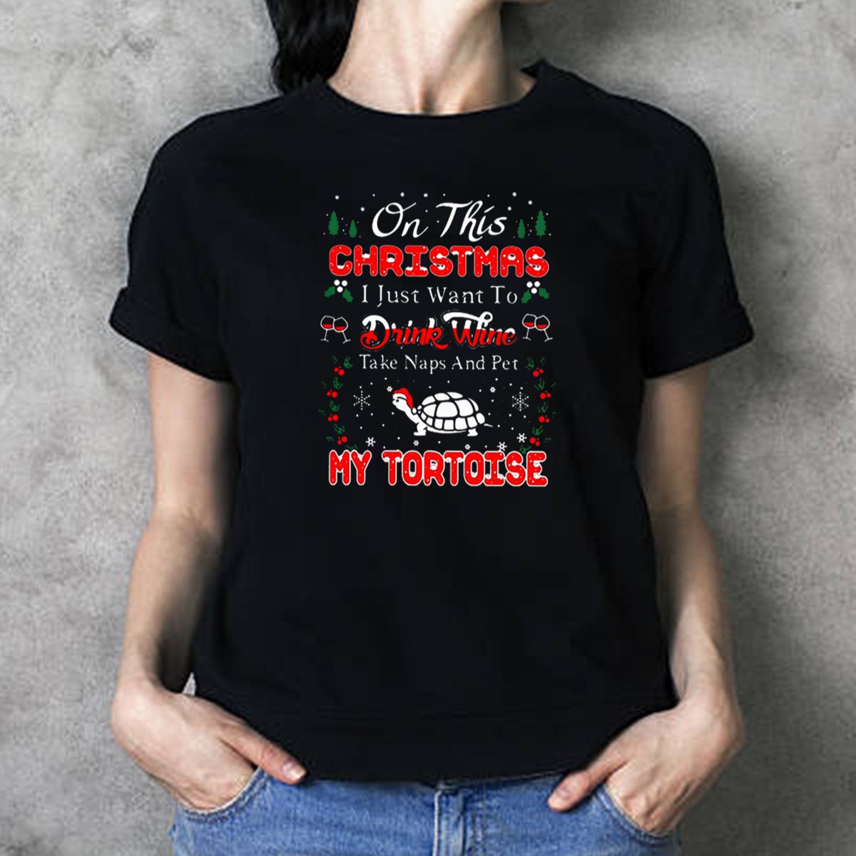 Celebrate the holiday season with our delightful “On This Christmas I Just Want To Drink Wine Take Naps And Pet My Tortoise” T-Shirt! Perfect for animal lovers and wine enthusiasts alike, this fun and festive shirt is designed for those who appreciate a laid-back holiday vibe. Ideal for casual wear, themed events, or simply lounging at home, this fan-made design is sure to bring smiles and spark conversations wherever you go. Printed proudly in the USA, it’s a unique addition to your holiday wardrobe!