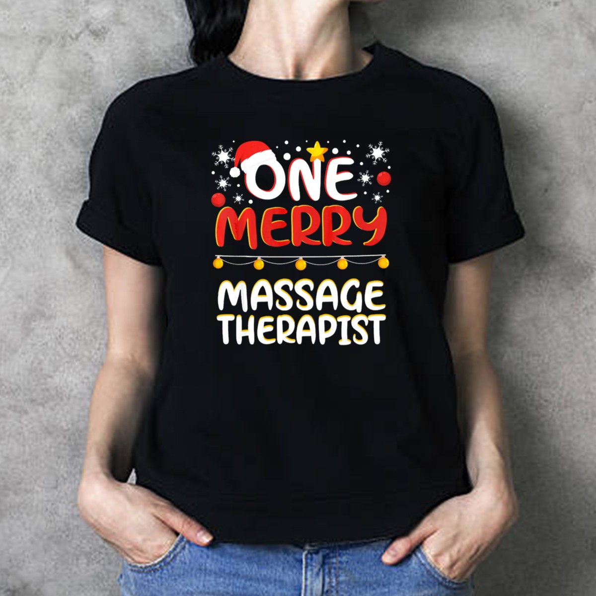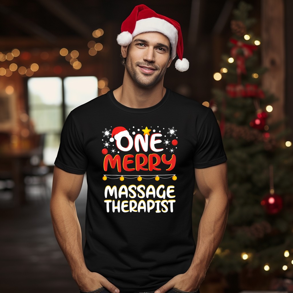 Celebrate the holiday season in style with our “One Merry Massage Therapist” T-Shirt, perfect for anyone in the wellness field who wants to spread festive cheer! This fan-made design features a playful Santa hat surrounded by snowflakes and holiday lights, making it an ideal choice for casual wear, themed events, or daily outings during the joyful season. Crafted with comfort in mind, this tee is not just a statement piece, but a cozy addition to your all-season wardrobe.