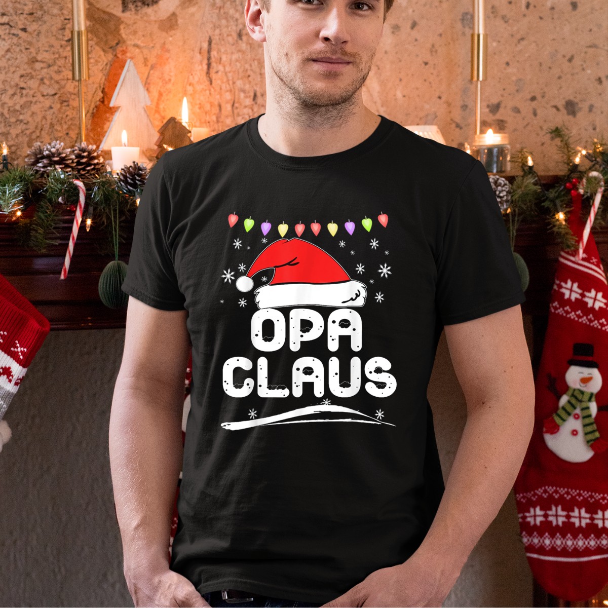 Celebrate the joy of the holidays with our Opa Claus Santa Hat Christmas Lights Grandpa T-Shirt! This festive shirt is perfect for family gatherings, themed events, or simply spreading cheer during the holiday season. Designed for grandpas who love to bring smiles to their loved ones, this fan-made graphic tee features a fun and vibrant print that captures the spirit of Christmas. Crafted for comfort and style, it’s an ideal choice for all your casual wear needs throughout the year!