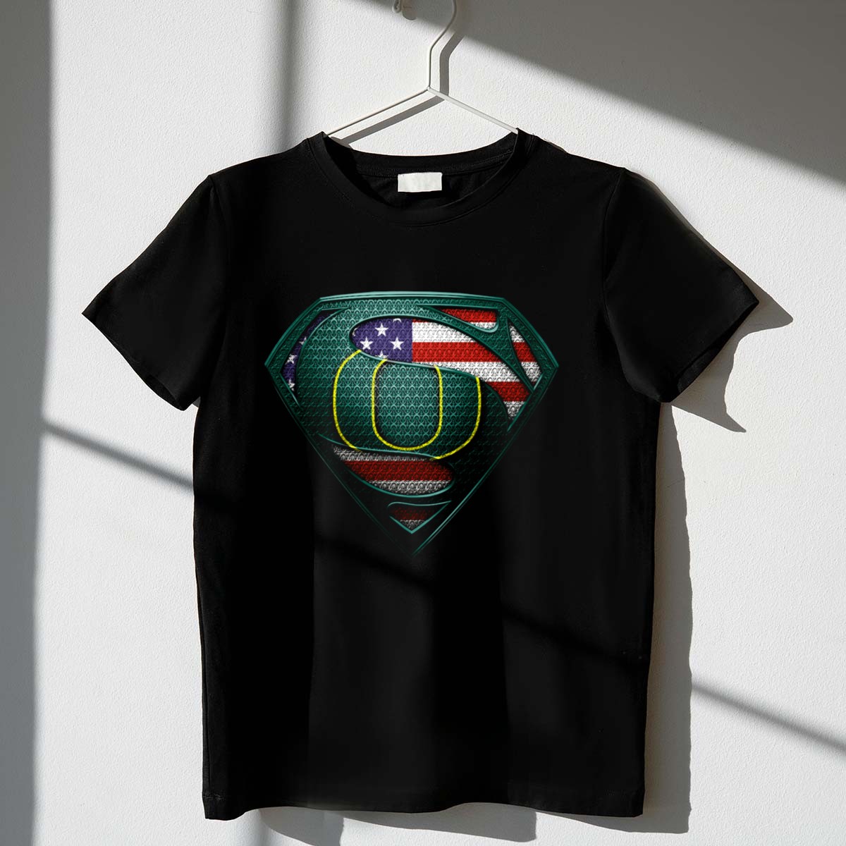 Show your team spirit with the Oregon Ducks American Flag Shield T-Shirt! Perfect for die-hard fans, this shirt combines a patriotic design with a love for the Ducks, making it an ideal choice for casual outings, themed events, or just lounging at home. Crafted from soft, breathable cotton, this fan-made shirt is not only stylish but also comfortable for all-day wear, proudly printed in the USA.