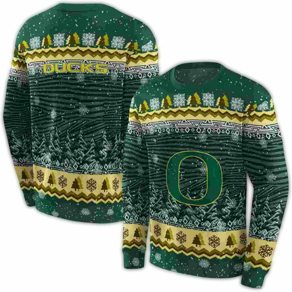 Oregon Ducks Christmas Trees All-Over Print Sweatshirt
