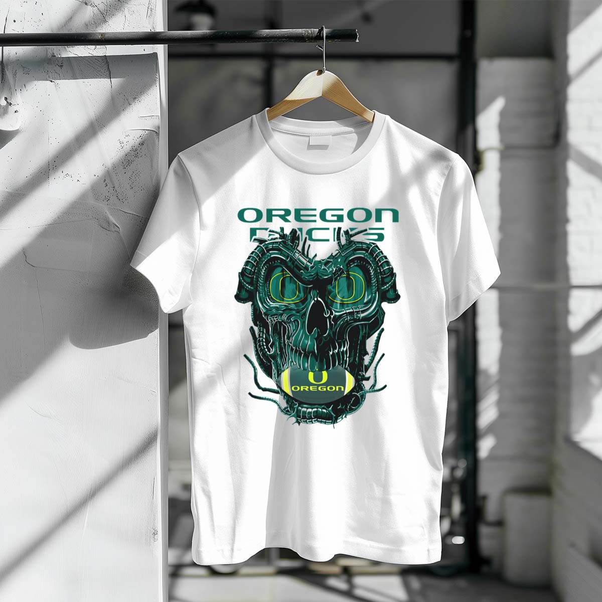 Show your team spirit with the Oregon Ducks Dragonskull Football Fusion T-Shirt! This fan-made design is perfect for die-hard Oregon Ducks supporters who want to stand out during casual outings, themed events, or daily wear. Crafted with care and printed in the USA, this stylish tee combines comfort and durability, making it an essential addition to your wardrobe for any season.