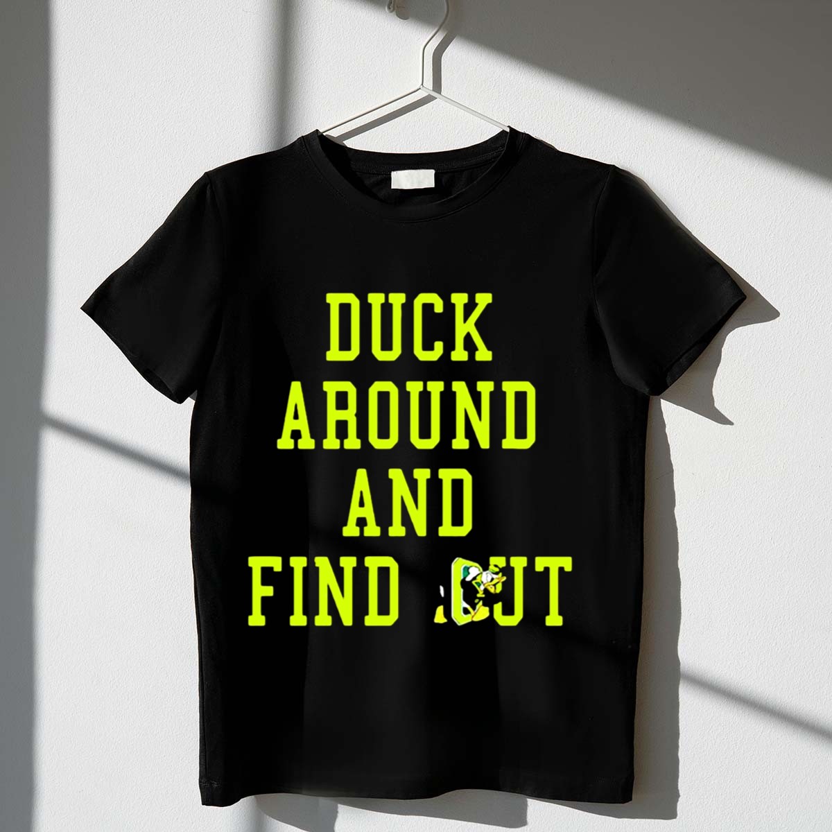 Show your team spirit with the Oregon Ducks “Duck Around and Find Out” T-Shirt! Perfect for passionate fans, this shirt is designed for casual outings, game days, or themed events where you want to showcase your pride. Made with a fan-made design, printed right here in the USA, this tee combines comfort with a bold statement, making it an essential addition to any Ducks fan’s wardrobe.