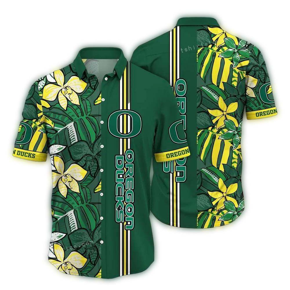 Embrace the spirit of the Oregon Ducks with our Flower Leafs Stripe Art Hawaiian Shirt! Perfect for fans and adventurers alike, this shirt brings a vibrant twist to your summer wardrobe. Whether you’re headed to a beach party, a backyard barbecue, or a casual game day, this unique shirt will make you stand out and show off your team pride in style.