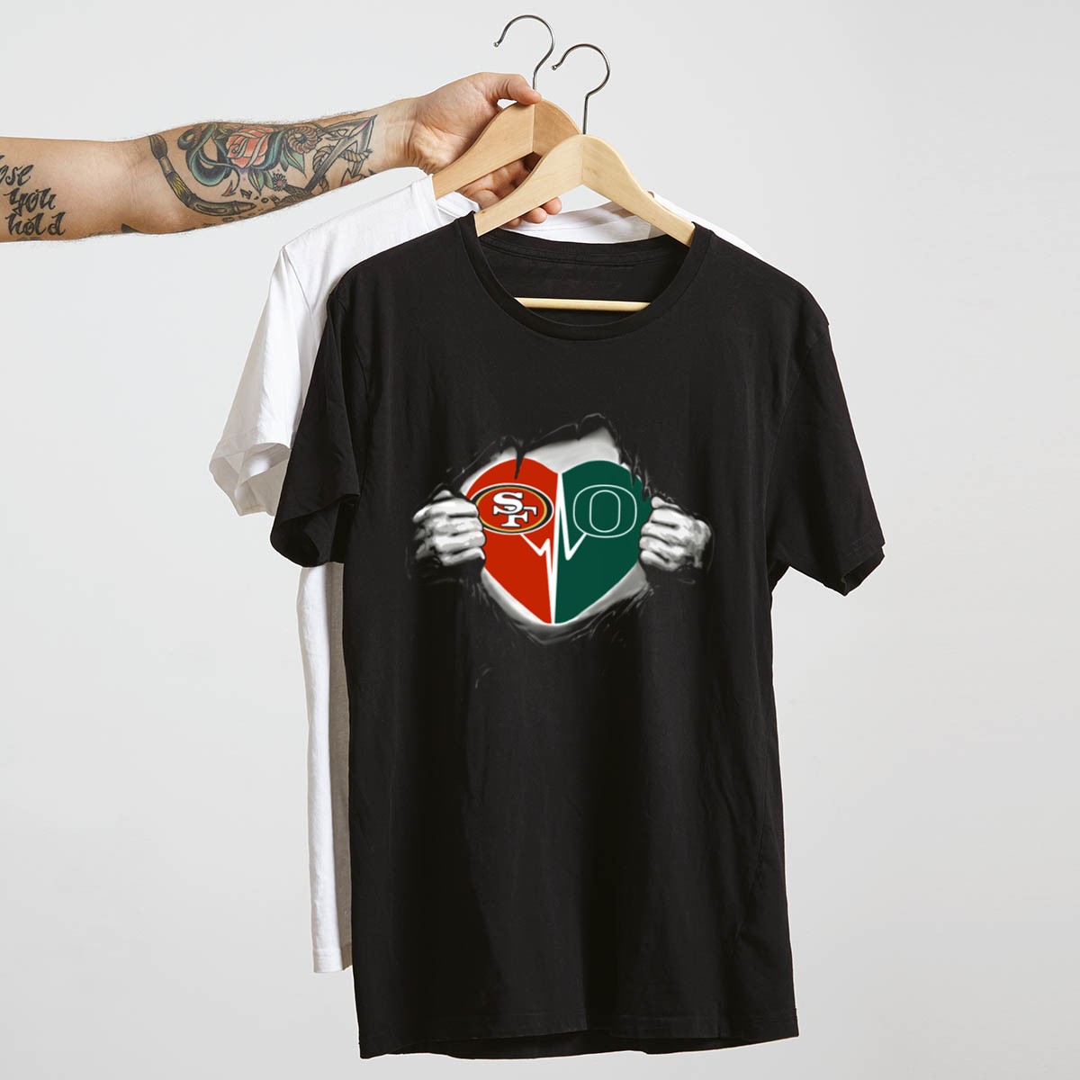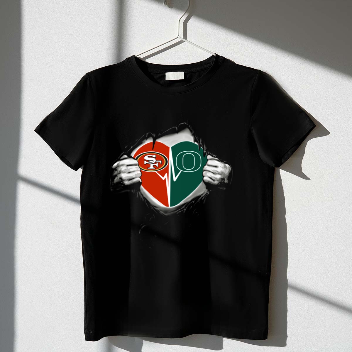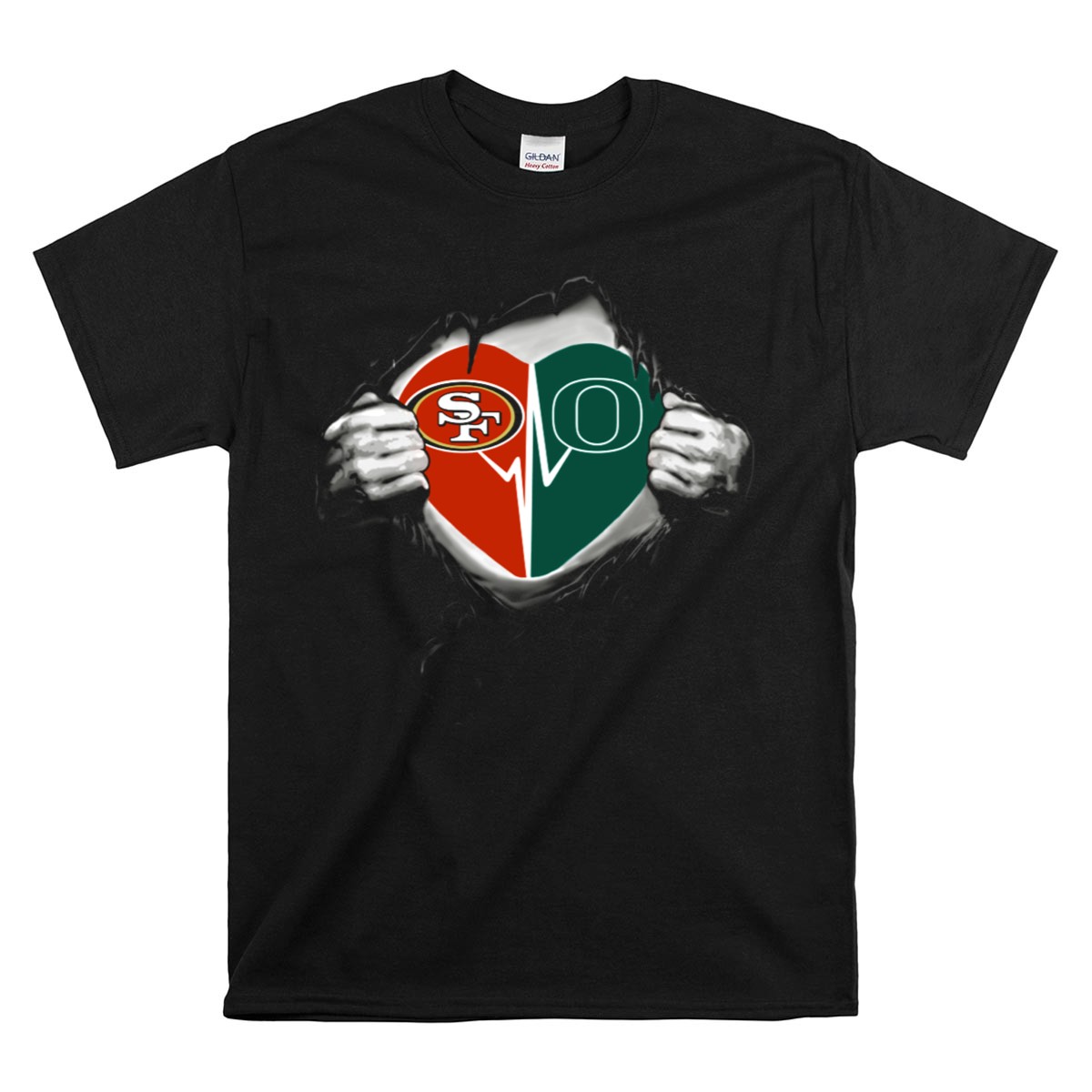 Show your love for both the Oregon Ducks and the San Francisco 49ers with this unique heart-themed T-shirt! Perfect for fans who want to represent their favorite teams in style, this shirt is ideal for casual outings, themed events, or just lounging around. Made with high-quality materials and fan-made designs printed right here in the USA, it’s a must-have addition to any sports lover’s wardrobe.