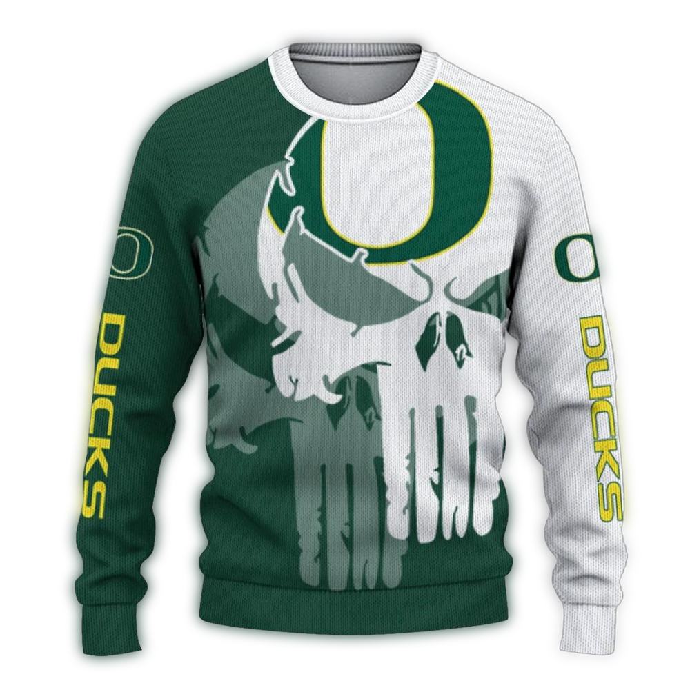 Get ready to unleash your inner fan with the Oregon Ducks Skull Punisher Split Ugly Sweater! This playful yet bold design is perfect for die-hard Ducks supporters looking to showcase their team spirit in a fun and festive way. Ideal for holiday parties, game days, or simply lounging at home, this sweater combines comfort and style to make you the life of any gathering!