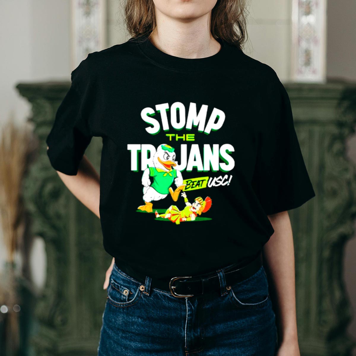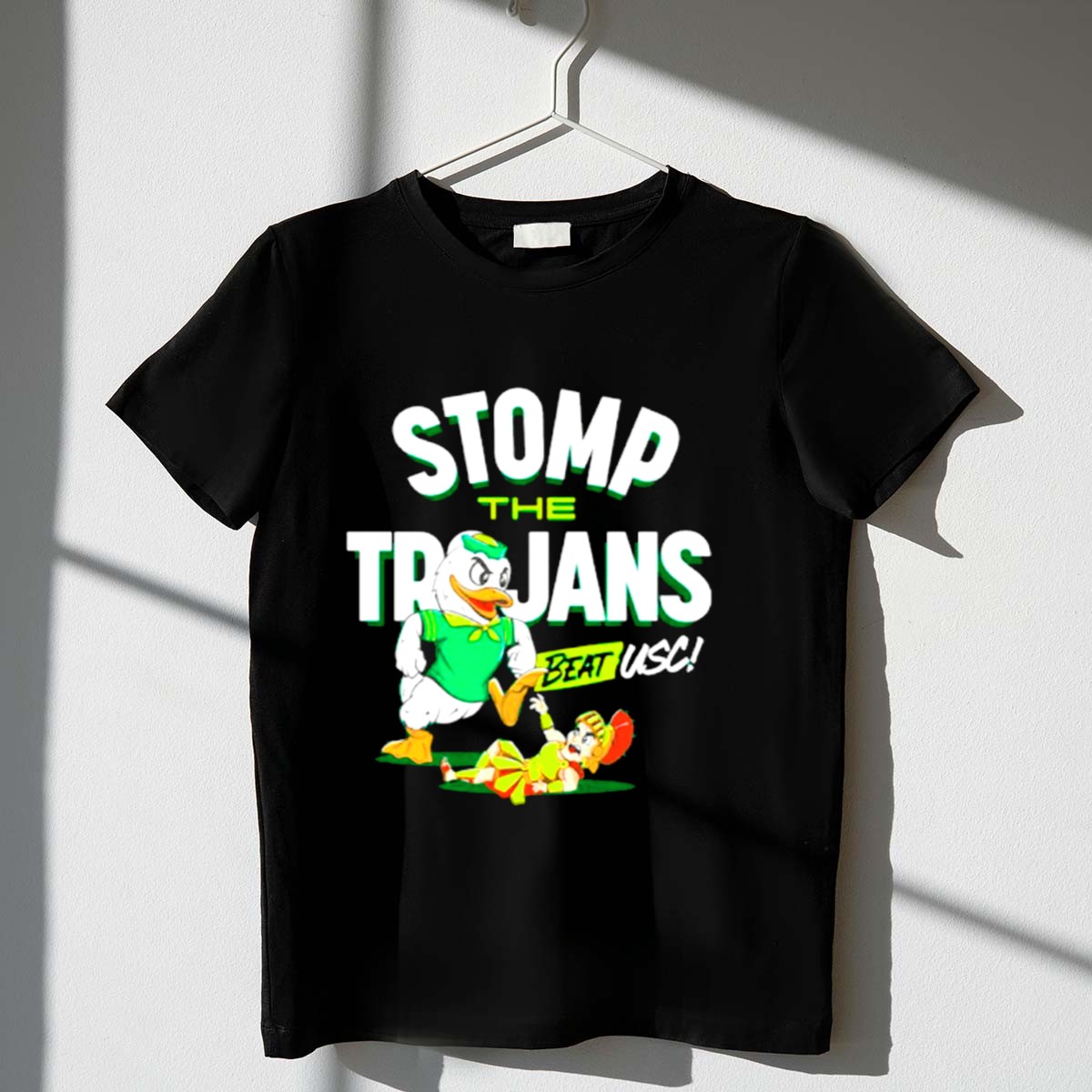 Show your unwavering support for the Oregon Ducks with our “Stomp The Trojans” Victory T-Shirt! Perfect for die-hard fans, this shirt is ideal for casual outings, themed events, or daily wear as you cheer on your team. Its fan-made design, proudly printed in the USA, makes it a unique addition to your wardrobe that showcases your team spirit and dedication to Oregon Ducks football.