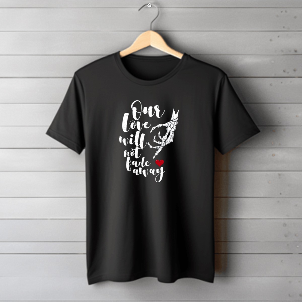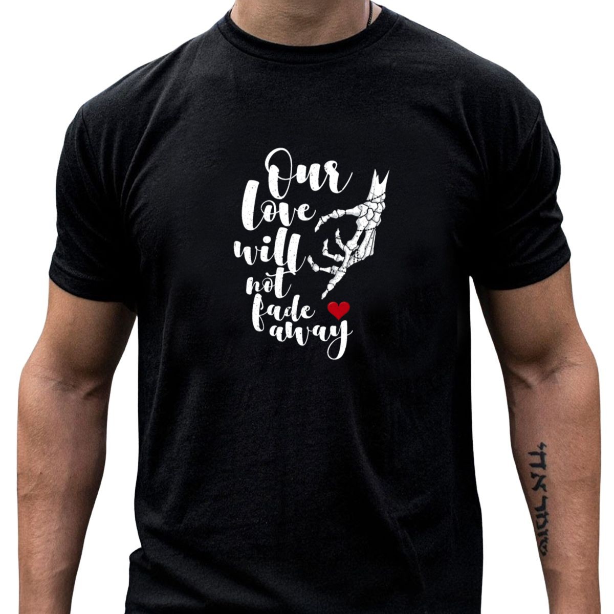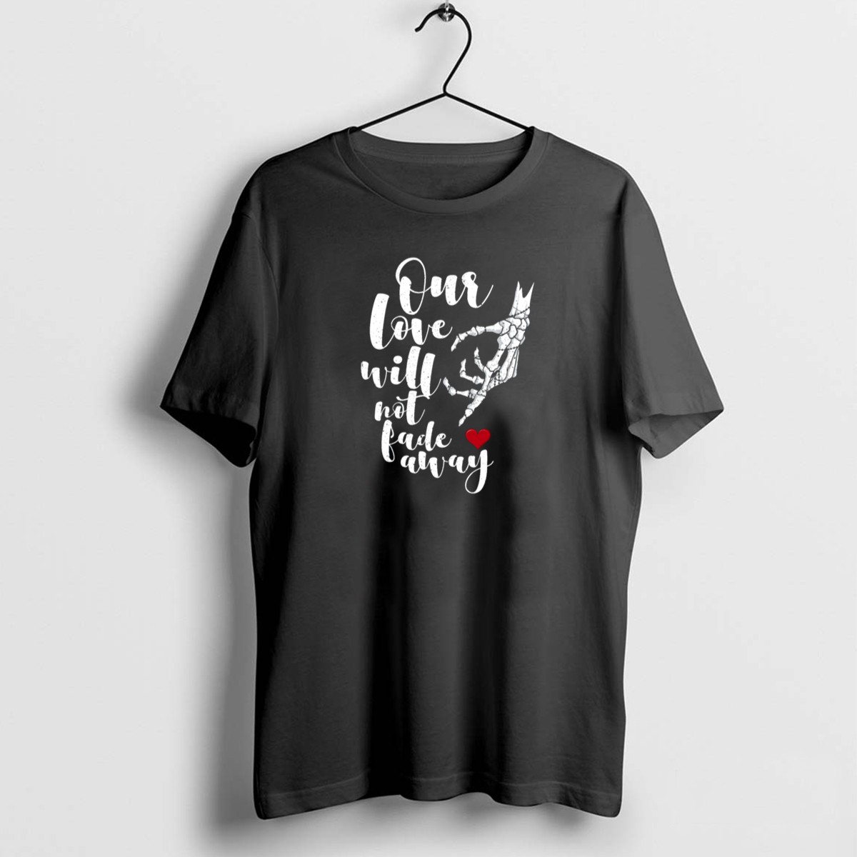 Be the first to review “Our Love Will Not Fade Away Skeleton Hand Halloween Heart T-Shirt”