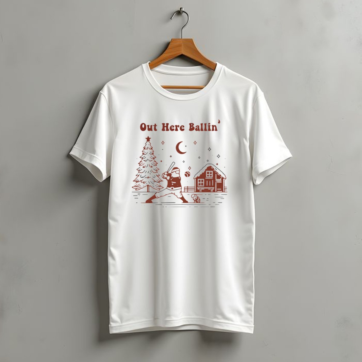 Celebrate the holiday season with our “Out Here Ballin’ Santa Playing Baseball” T-shirt! This fan-made design is perfect for baseball enthusiasts and holiday lovers alike, making it an ideal choice for casual wear, themed events, or daily outings. Crafted from 100% soft, durable cotton, this shirt ensures comfort while showcasing a fun and festive illustration that’s sure to bring smiles. Printed in the USA, it’s a unique piece that combines holiday cheer with a love for the game!