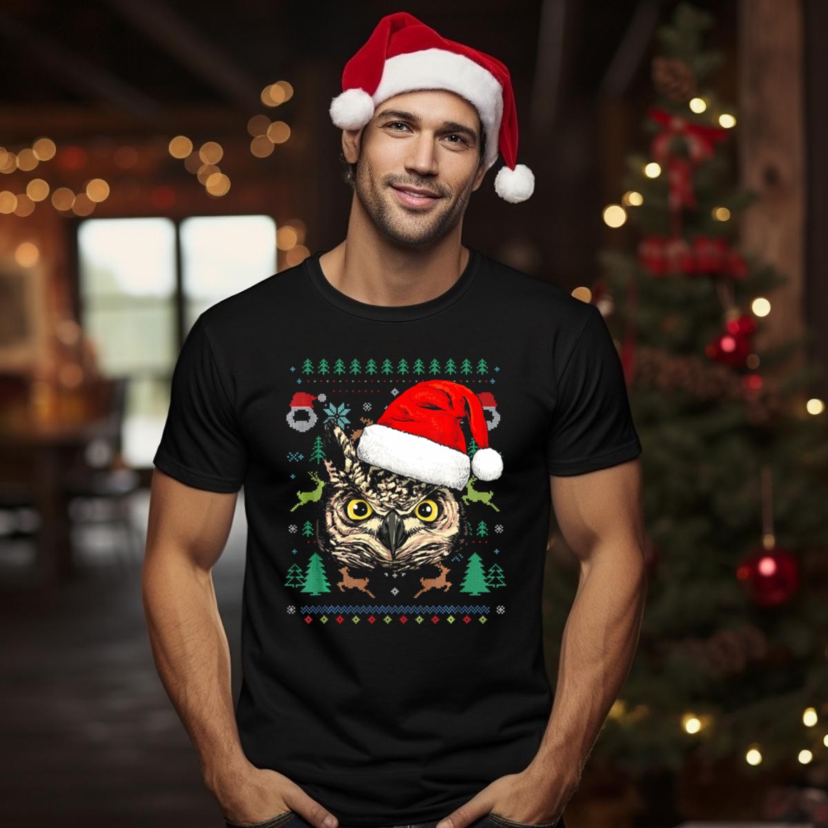 Embrace the festive spirit with our Owl Ugly Christmas Sweater T-Shirt, designed for those who love to celebrate the holiday season in style! Featuring a fun and whimsical fan-made design of owls, Santa hats, reindeer, trees, and snowflakes, this shirt is perfect for casual wear, themed events, and daily outings during the holidays. Made with quality in mind, this shirt is sure to bring joy and laughter wherever you go!