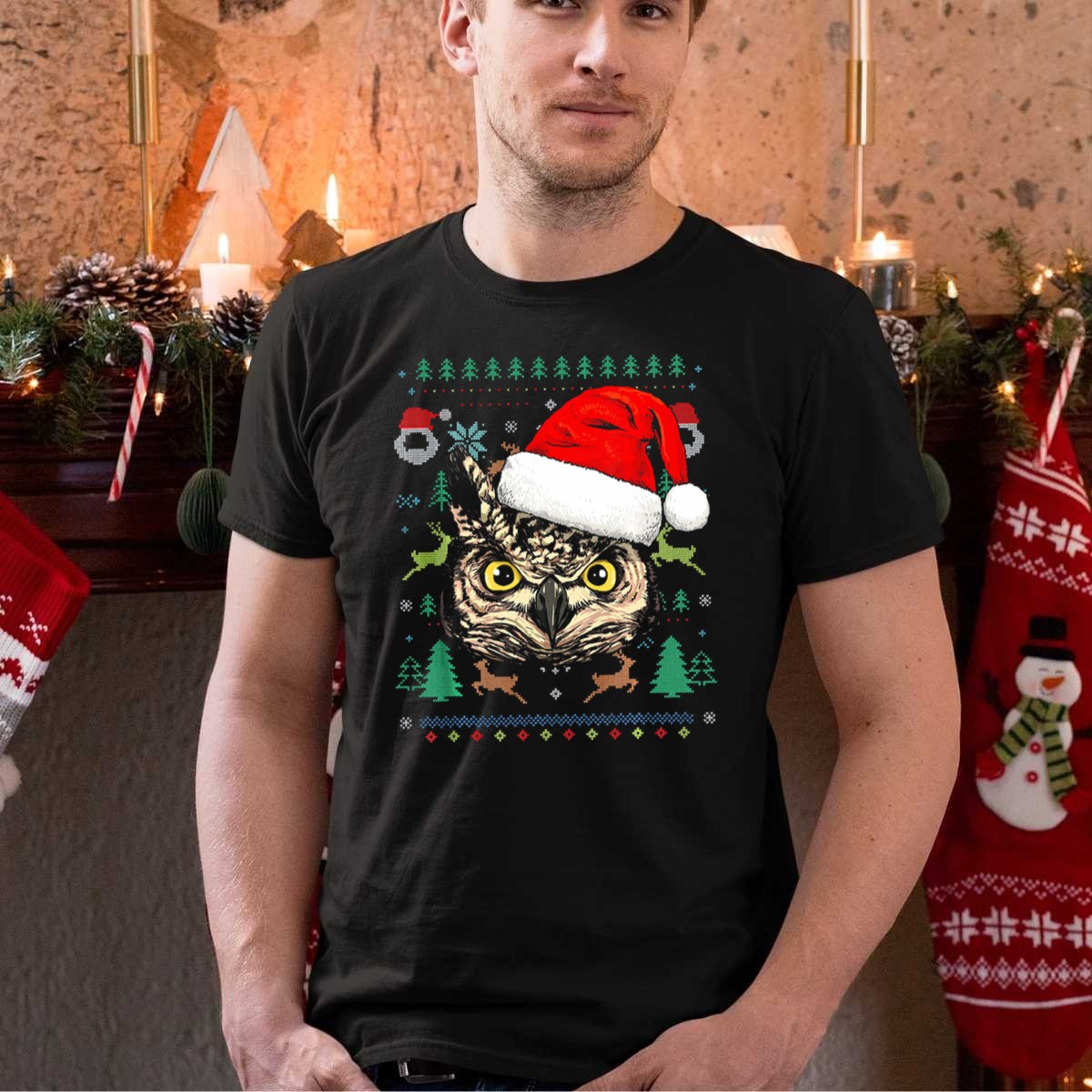 Be the first to review “Owl Ugly Christmas Sweater Santa Hat Reindeer Trees Snowflakes T Shirt”