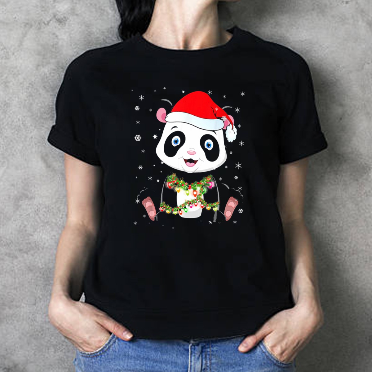 Embrace the festive spirit with our charming Panda Bear Light Christmas Santa Hat Snowflakes Garland T-Shirt! Perfect for animal lovers and holiday enthusiasts alike, this delightful tee adds a whimsical touch to your casual wear. Whether you’re attending themed events, celebrating with friends, or just enjoying a cozy day at home, this fan-made design, printed in the USA, is sure to spread joy and cheer throughout the holiday season.