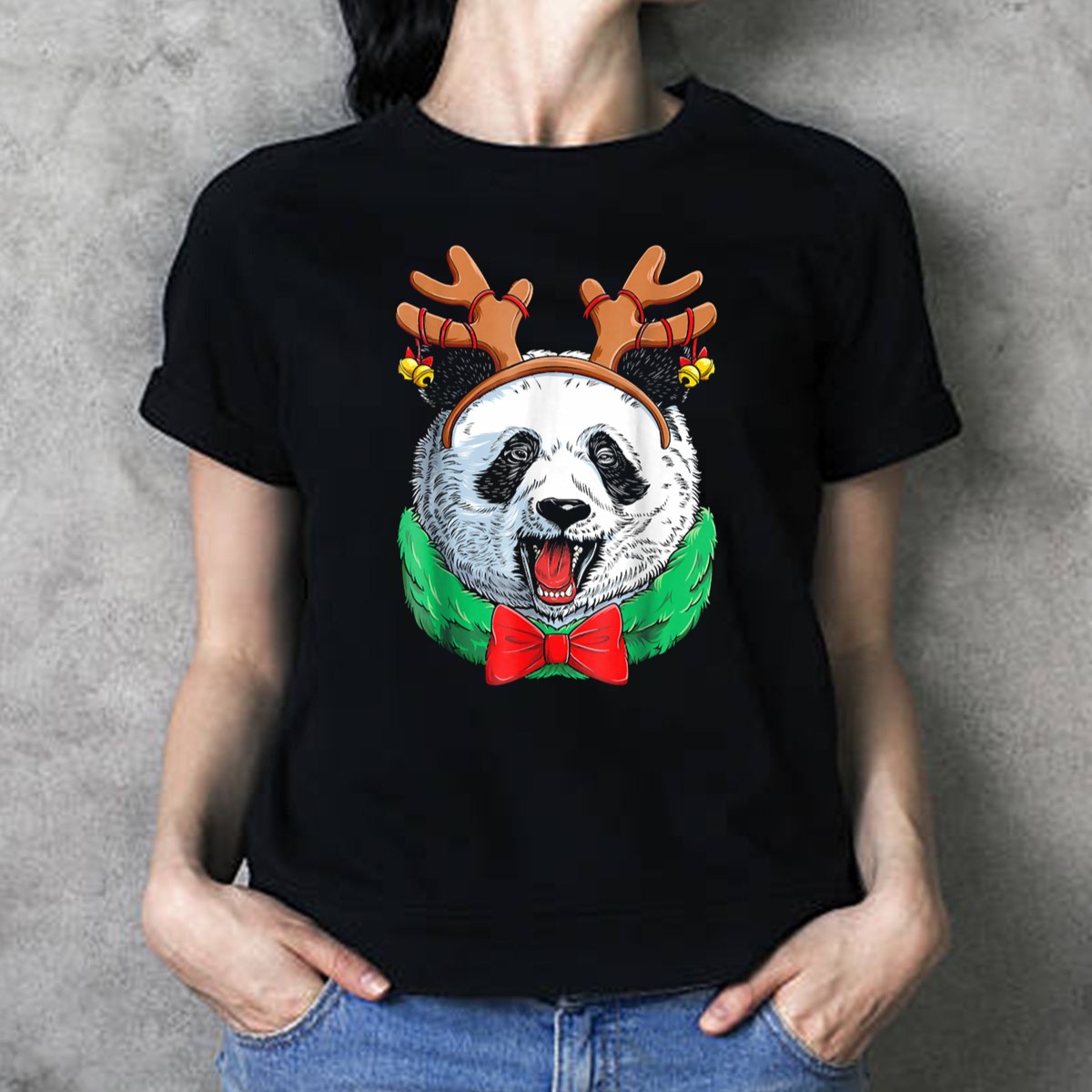 Be the first to review “Panda Christmas Reindeer Antlers With Festive Bow And Bells T-Shirt”