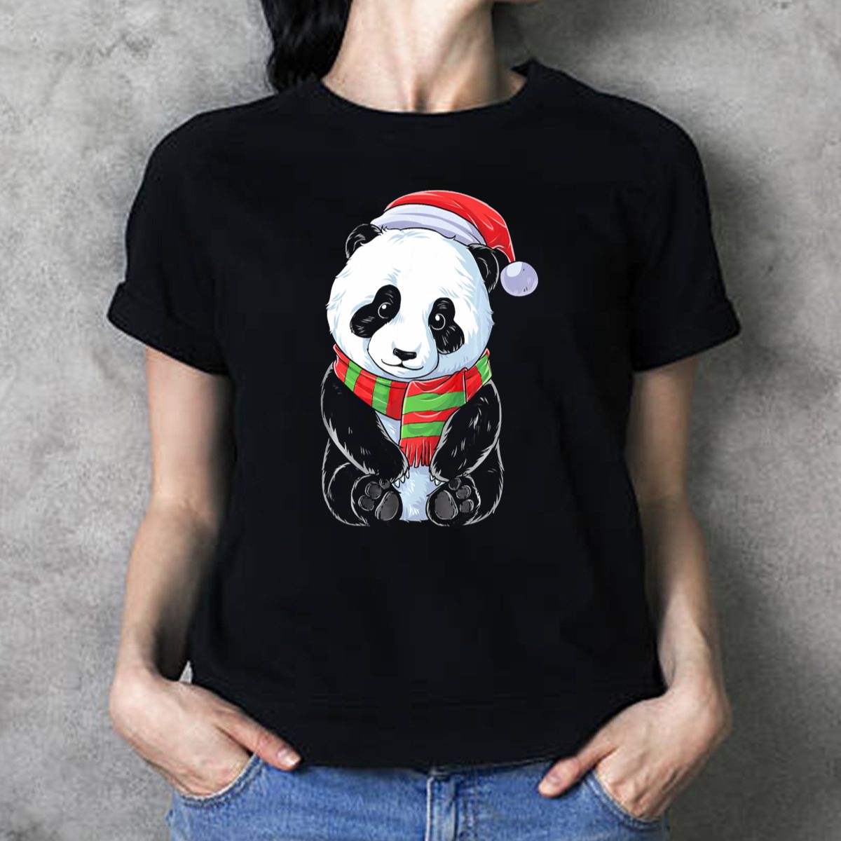 Be the first to review “Panda Christmas Santa Hat Red Green Scarf T Shirt 1”