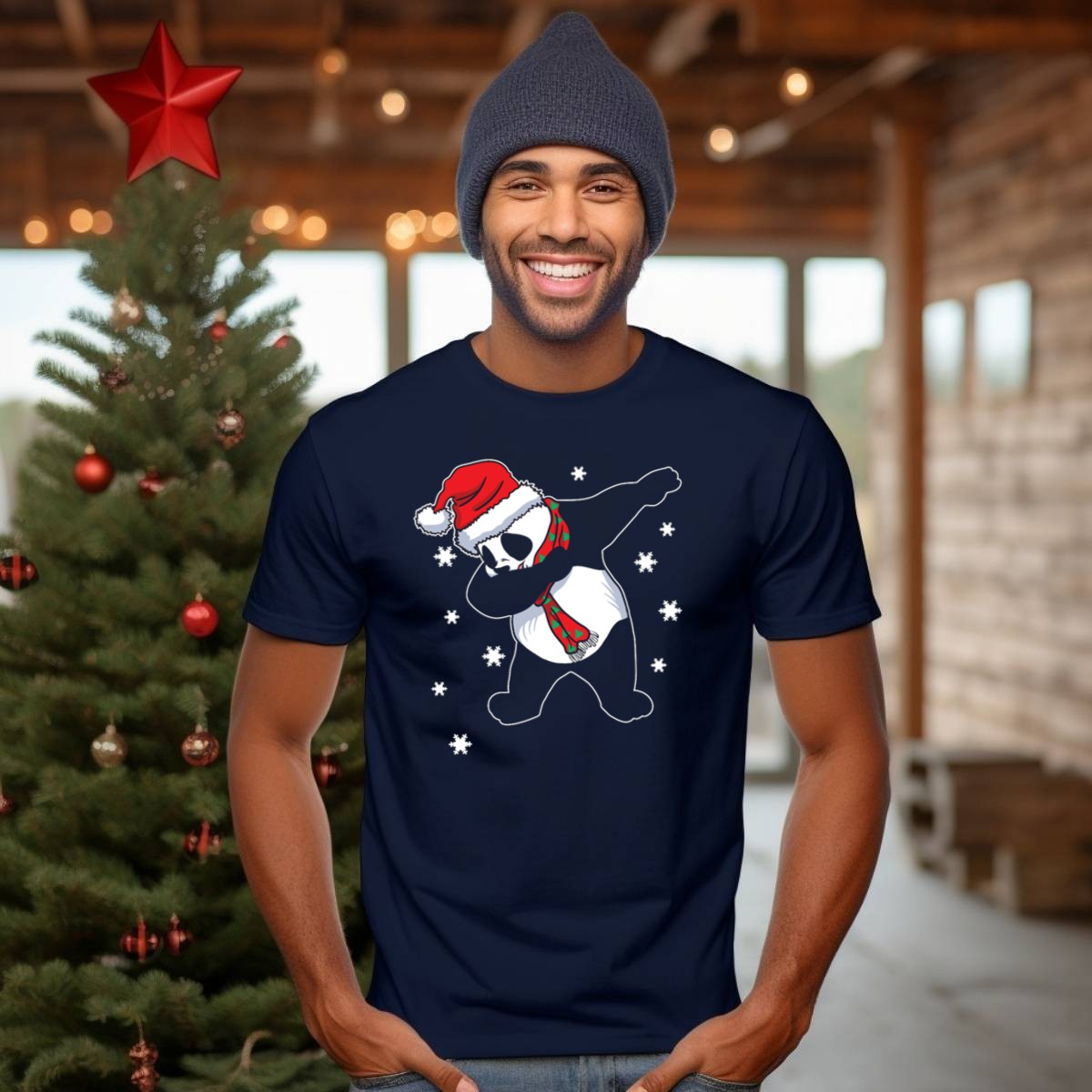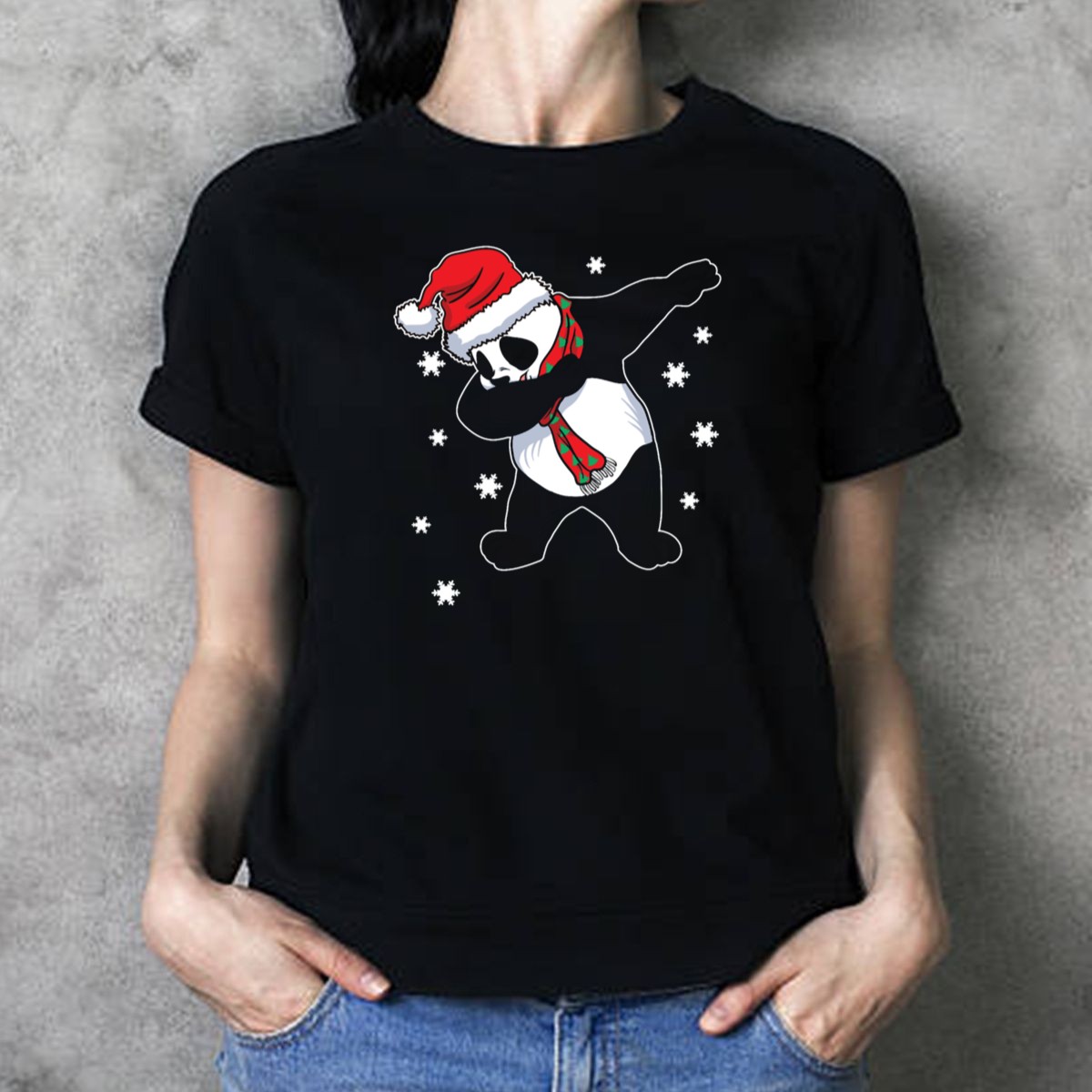 Be the first to review “Panda Christmas Xmas Dabbing Dabbin Santa Hat Scarf Snowflakes T Shirt”