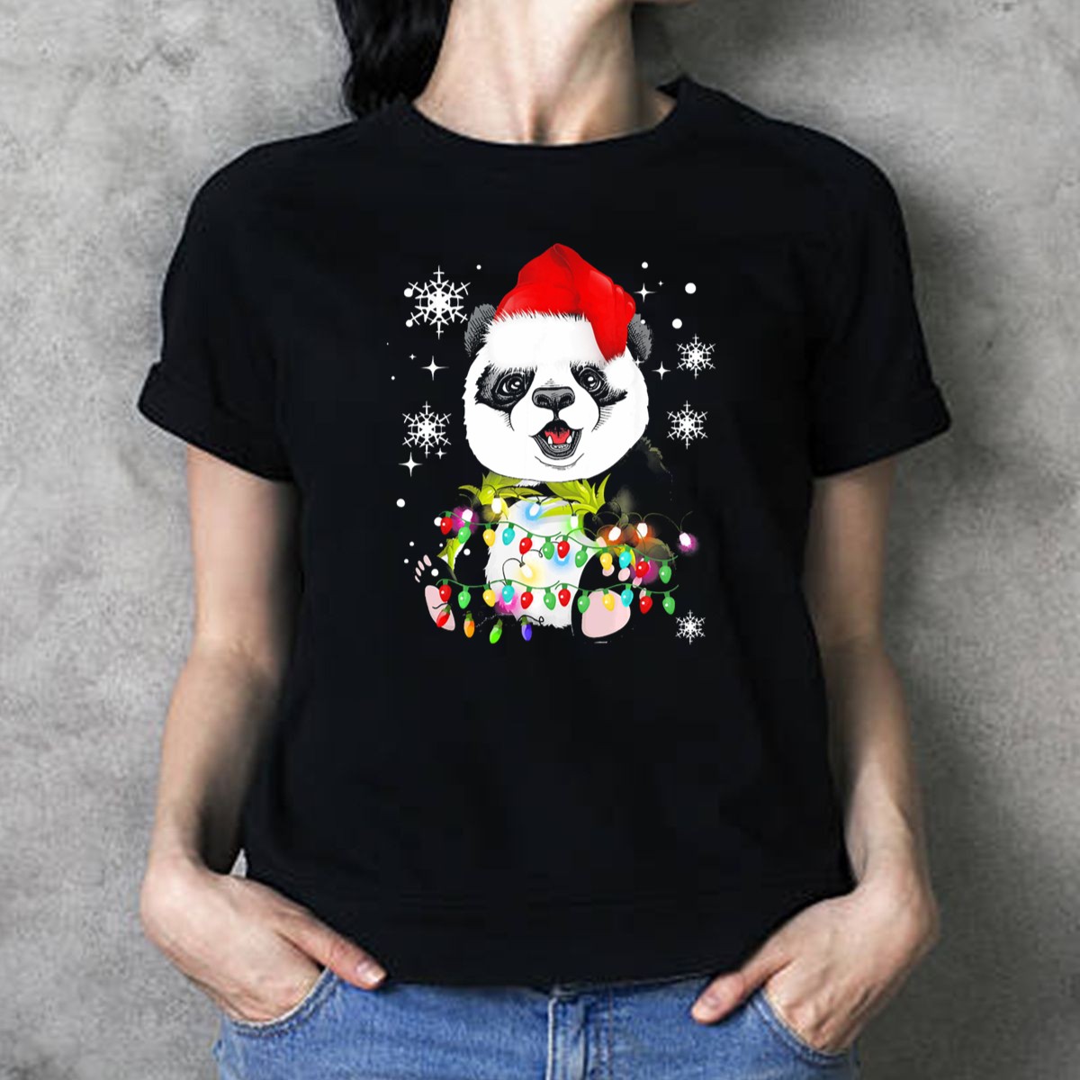 Be the first to review “Panda With Santa Hat And Christmas Lights Surrounded By Snowflakes T Shirt”