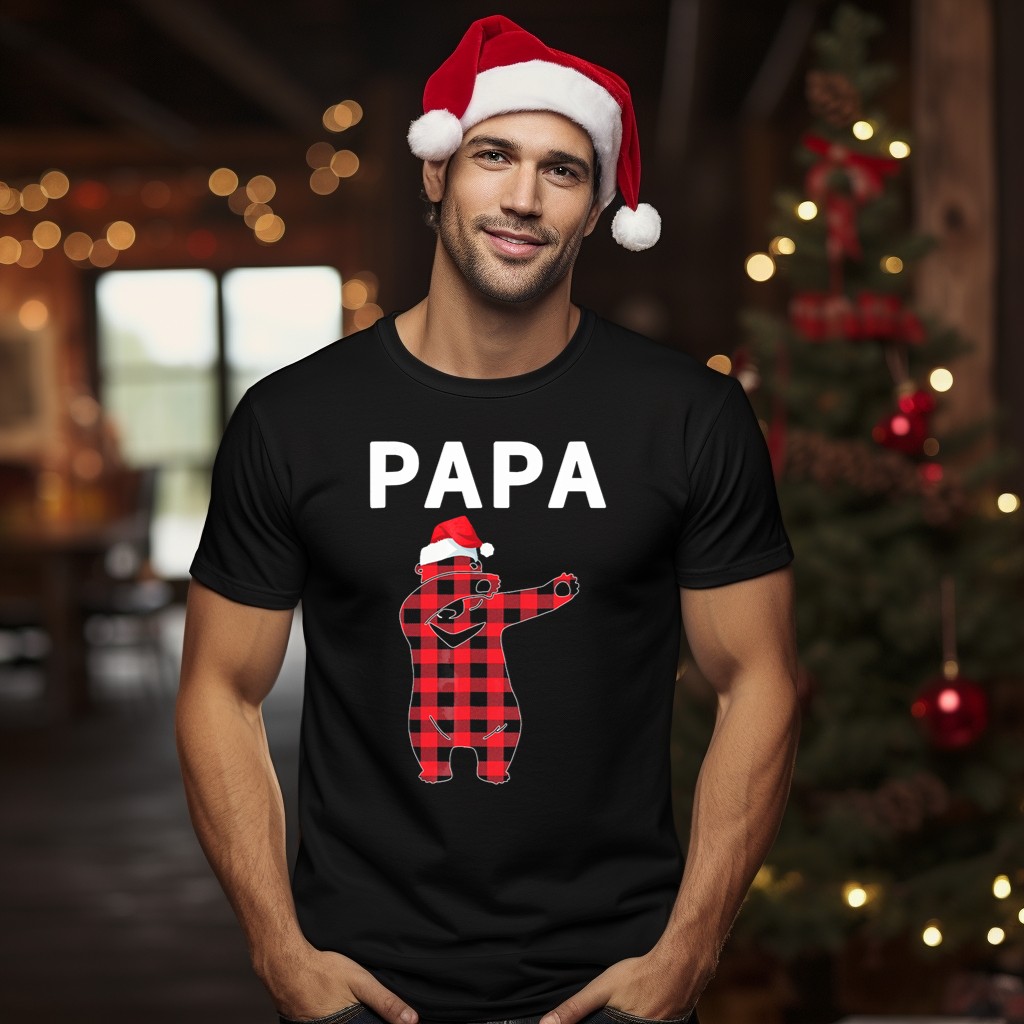 Celebrate the holiday spirit with our Papa Bear Plaid Santa Hat Christmas Dabbing T-Shirt, perfect for those who love to mix fun and festive vibes! This unique fan-made design features a playful dabbing bear in a plaid Santa hat, making it an ideal choice for family gatherings, themed events, or just lounging around during the holidays. Crafted for comfort and style, this T-shirt will keep you feeling great while spreading cheer all season long.