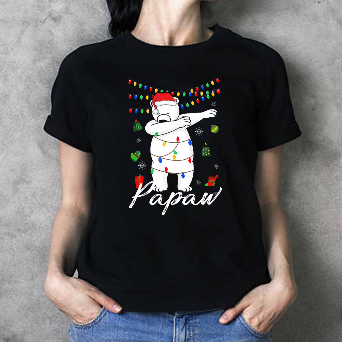 Celebrate the holiday spirit in style with our Papaw Bear Dabbing With Santa Hat And Christmas Lights And Gifts T-Shirt! Perfect for the fun-loving grandparent who enjoys spreading joy during the festive season, this shirt is ideal for casual wear, family gatherings, or themed events. Its unique design showcases a playful bear, bringing a touch of whimsy to your wardrobe while ensuring comfort and breathability throughout the day.