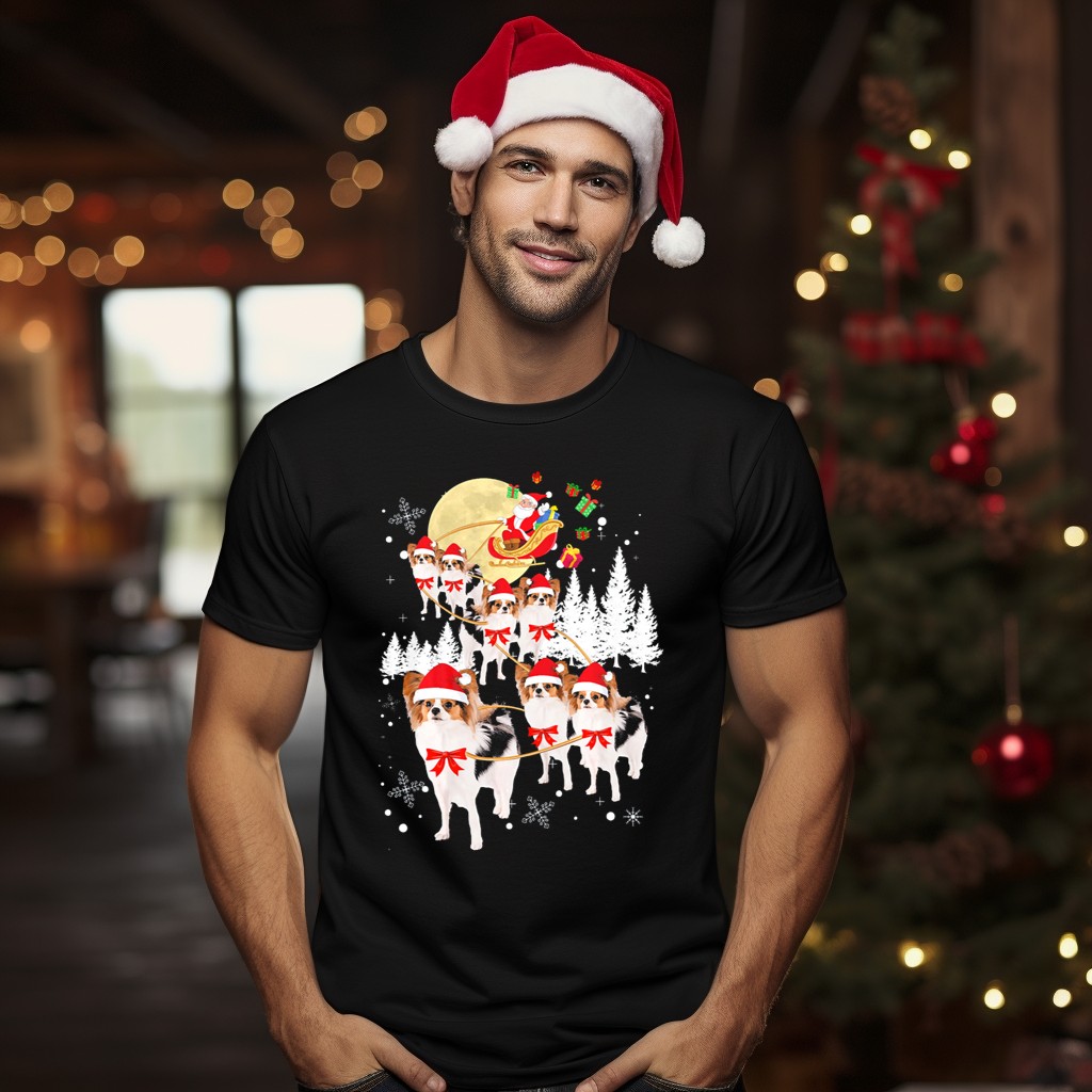 Be the first to review “Papillon Dogs Santa Reindeer Christmas Moon Snowflakes Trees T-Shirt”