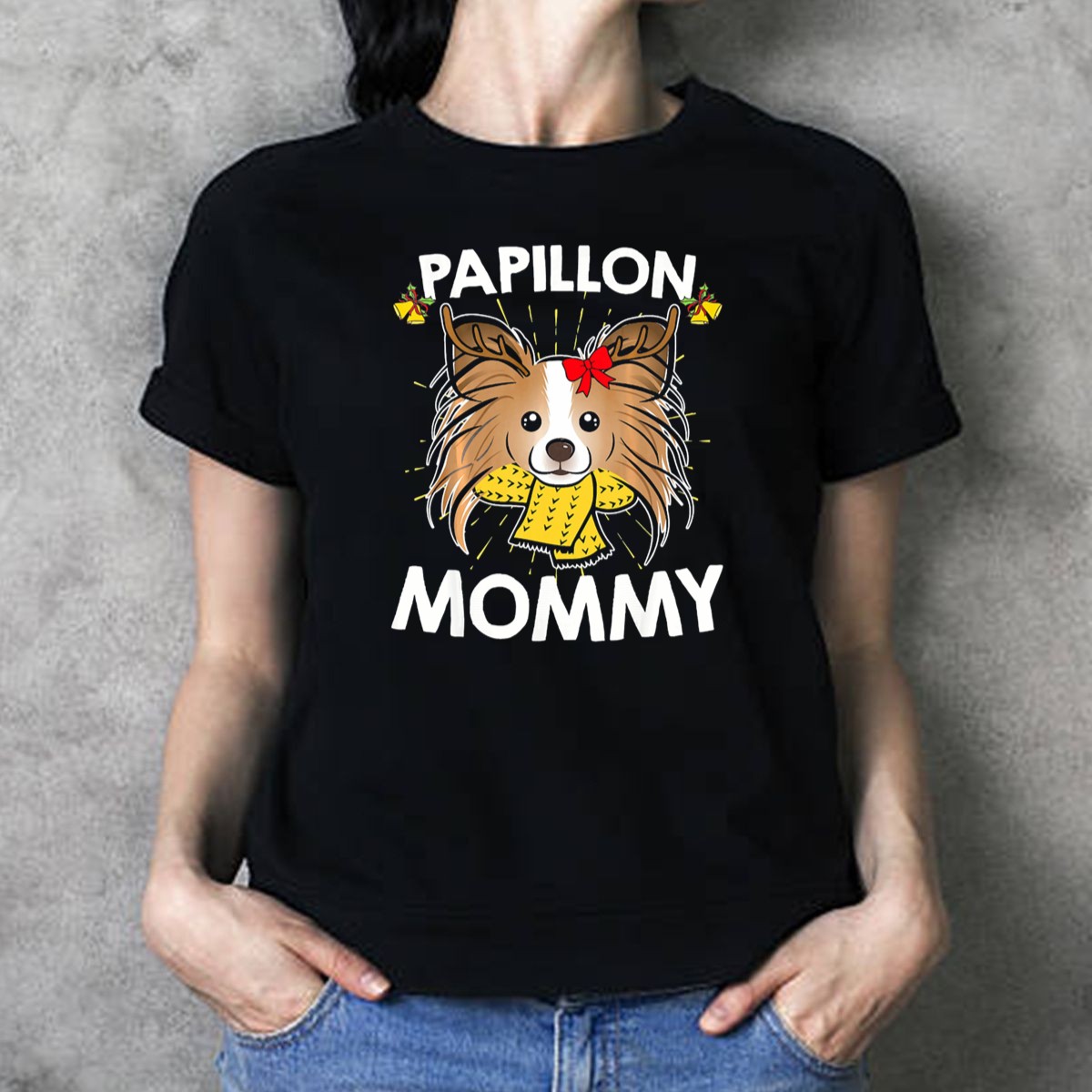 Papillon Mommy Christmas Dog Reindeer Holiday Bells T-Shirt