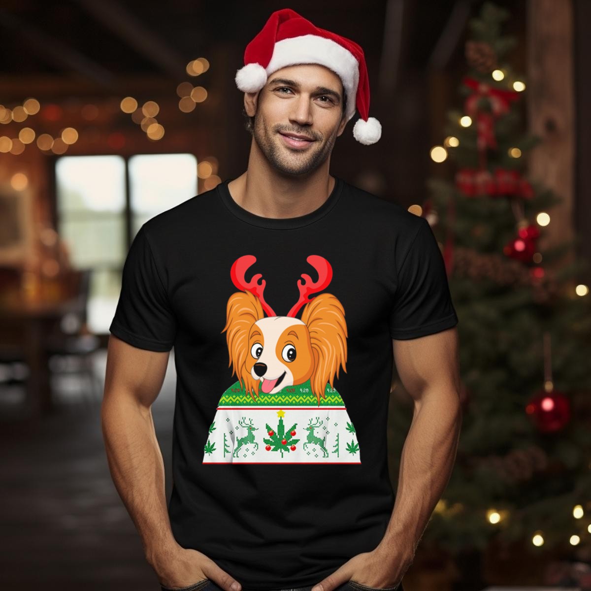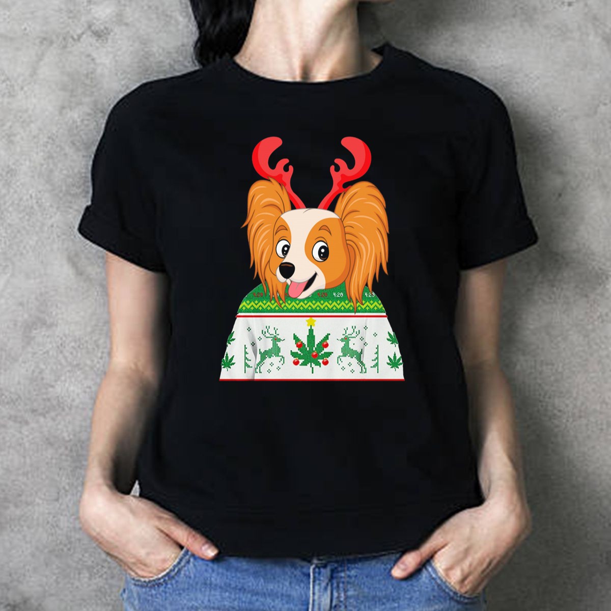 Celebrate the holiday season in style with our Papillon Ugly Christmas Dog With Antlers Reindeer Cannabis Weed T-Shirt! Perfect for dog lovers and cannabis enthusiasts alike, this fun and quirky design adds a dash of humor to your festive wardrobe. Ideal for casual gatherings, themed events, or just lounging around during the holidays, this shirt is a unique way to showcase your personality while staying comfortable. Made in the USA, it’s the perfect conversation starter for all your Christmas festivities!