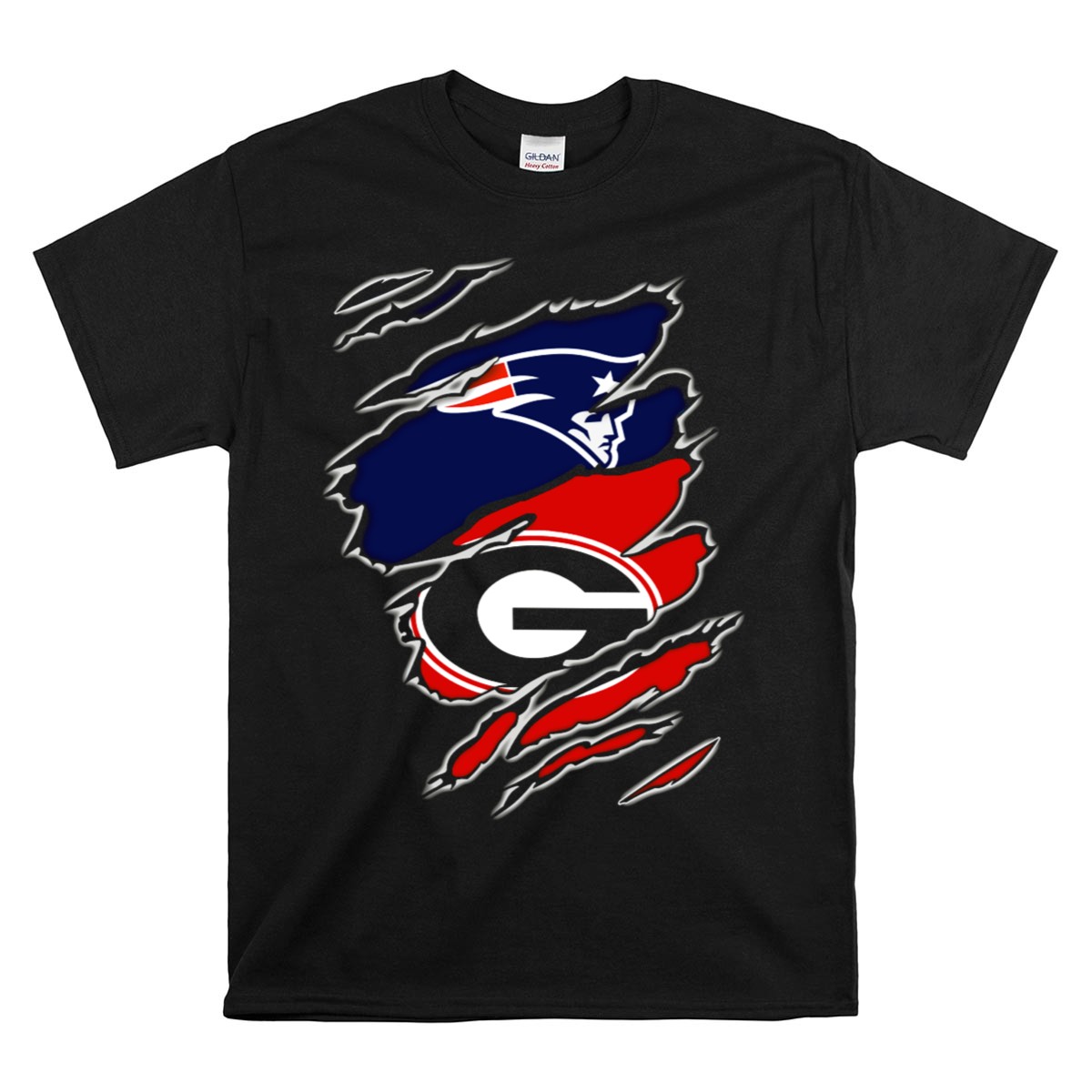 Show your team spirit in style with our Patriots and Georgia Bulldogs Team Logos Ripped T-Shirt! Perfect for fans who want to showcase their loyalty, this T-shirt combines a trendy ripped design with iconic team logos, making it an ideal choice for casual outings, themed events, or everyday wear. Crafted for comfort and durability, this shirt is a must-have for any true fan looking to stand out while cheering for their favorite teams!