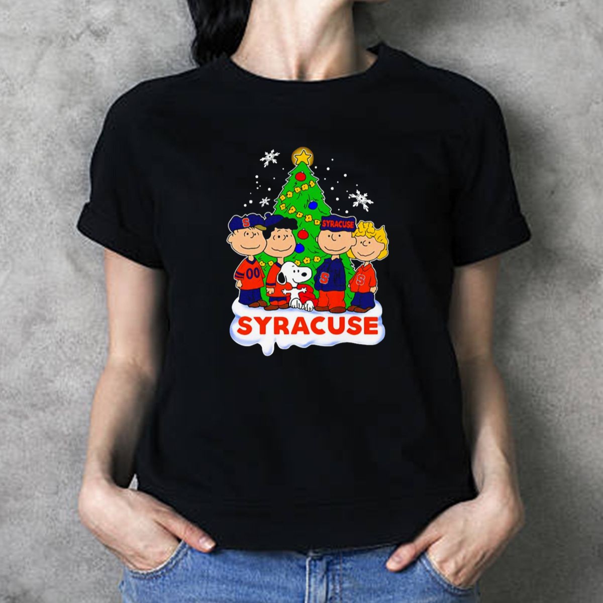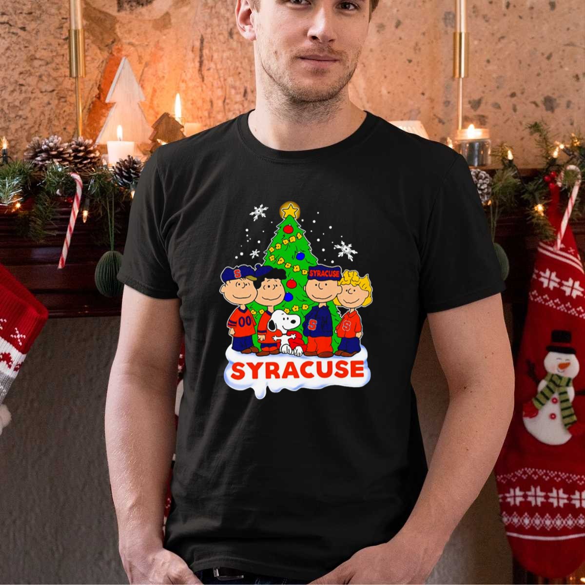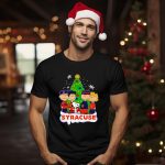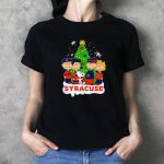 Celebrate the holiday season with this fun and festive Peanuts Characters Christmas Tree Syracuse Orange Football Snowflakes T-Shirt! Perfect for fans of all ages, this shirt is ideal for casual wear, themed events, or just spreading some cheer during the holidays. Made with a unique fan-made design, it showcases the beloved Peanuts characters in a playful winter scene, making it a standout piece that brings joy and nostalgia to your wardrobe.